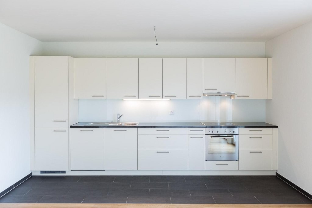 - Küche und Nasszelle mit pflegeleichtem, dunklem Plattenboden