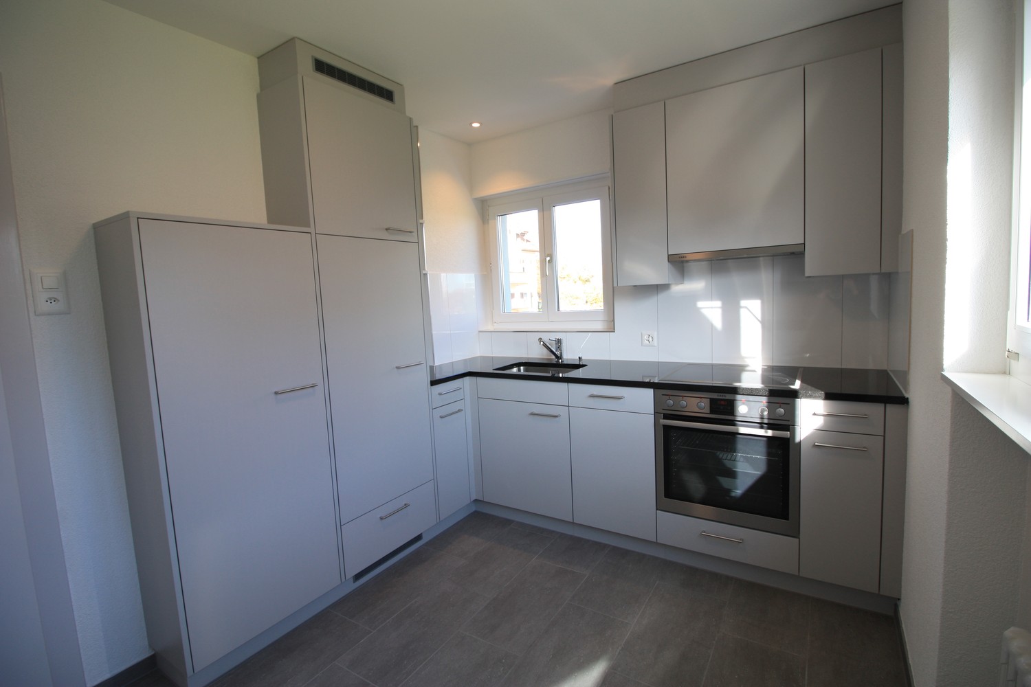 Die Wohnung verfügt über eine neue, moderne Küche mit Geschirrspüler sowie über neue Einbauschränke, die praktischen Stauraum bieten.