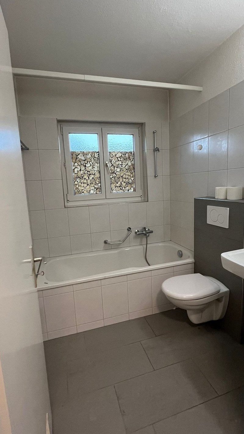 Das Badezimmer ist mit einer Badewanne inklusive Duschstange ausgestattet. Eine Waschküche mit Waschmaschine und Tumbler steht zur Verfügung.