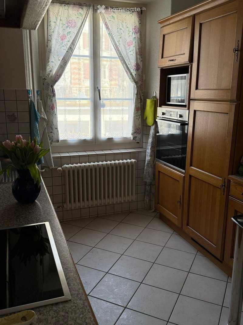 Á louer proche des écoles, des commerces et des transports publics grand ( 95m²) et lumineux appartement de 4,5 pièces avec cuisine agencée lave-vaisselle, cagibi, armoires murales, balcon et cave, buanderie commune dans petit immeuble. Libre fin mai ou date à convenir. Loyer 1100.-frs plus 250.-frs de charges.