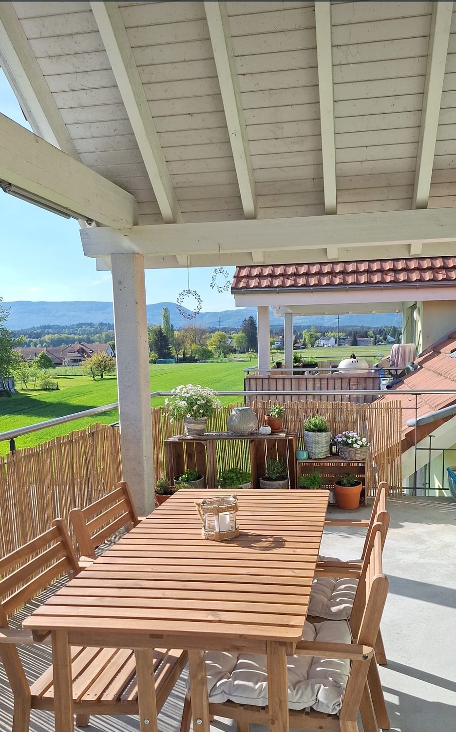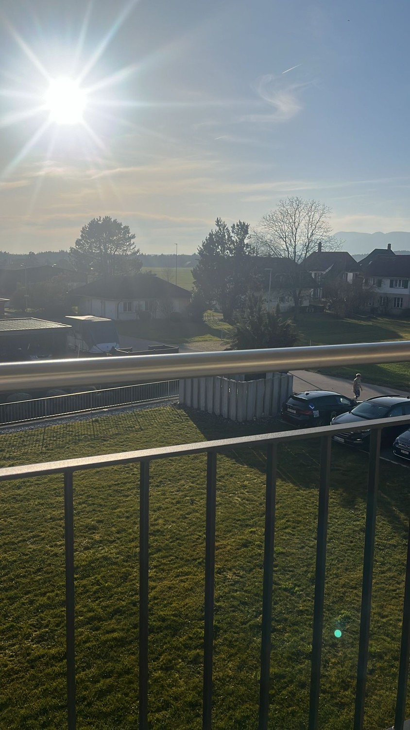 Es ist eine Maisonettewohnung mit einem grossen Balkon, welcher mit Blick ins Grüne und auf den Jura besticht.