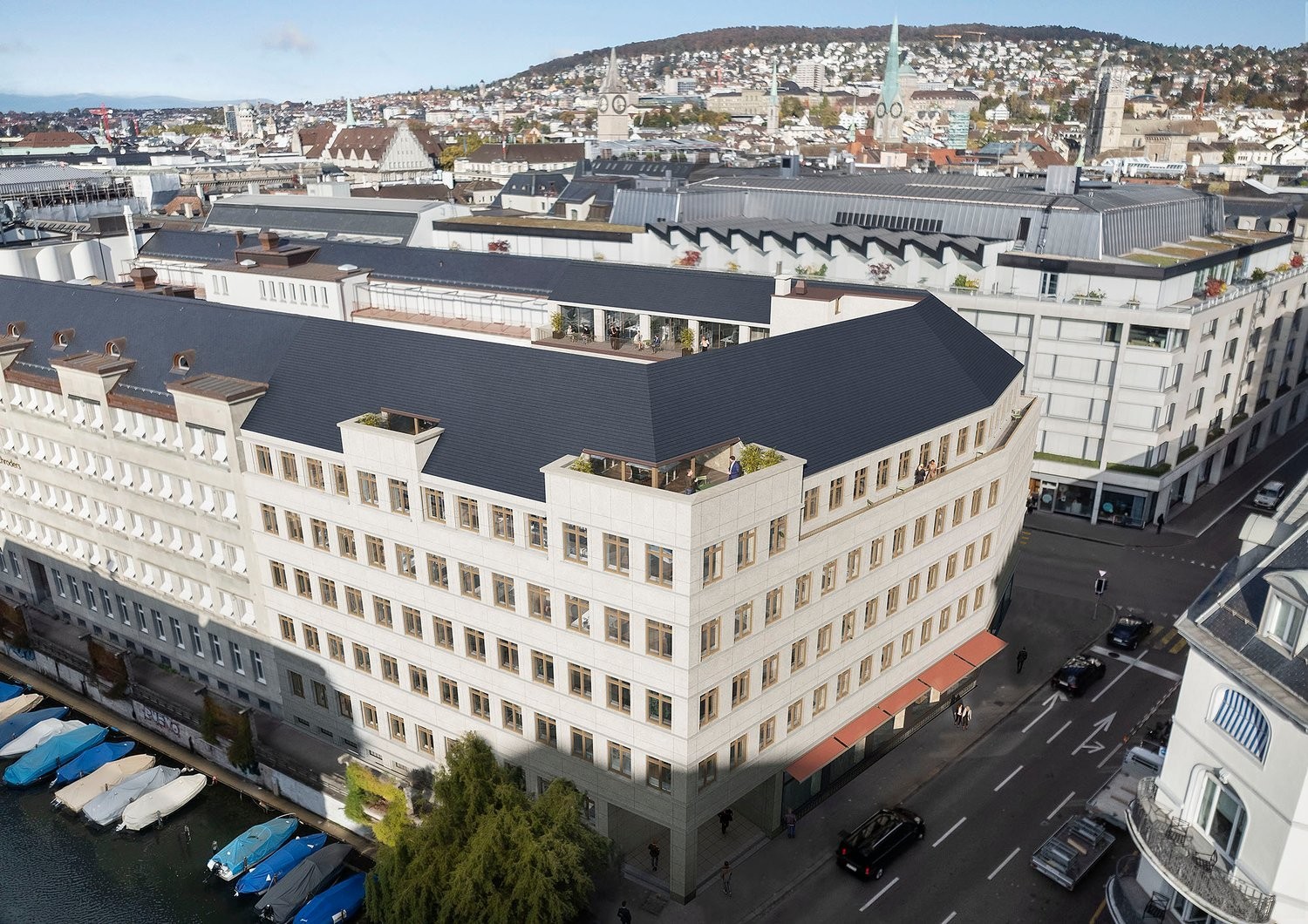Rund 4'000m2 Bürofläche (1.OG - 5. OG) und 1'000m2 Ladenfläche im Erdgeschoss stehen zur Verfügung.
