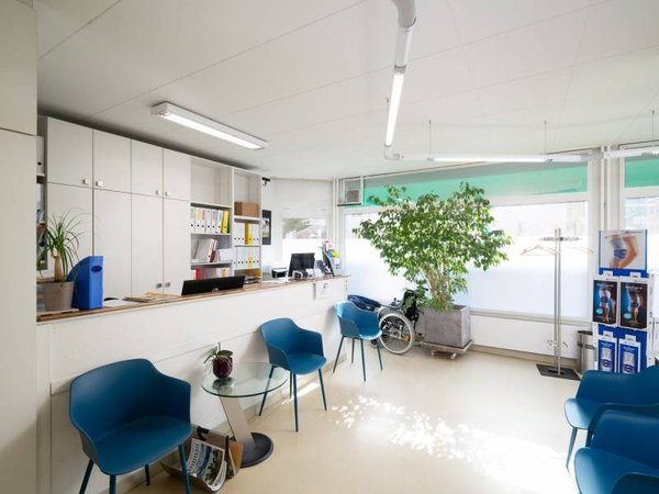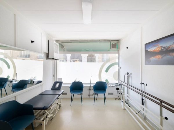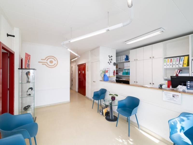 La surface du rez-de-chaussée comprend, en plus d'un espace accueil/réception, quatre bureaux, dont deux en enfilade. Les cloisons de ces derniers sont amovibles, permettant ainsi de créer un espace de vente ouvert.