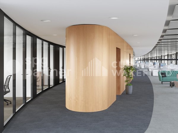 Une réception, des salles de conférences, des cafétérias ainsi que des surfaces de stockage seront mises à disposition des futurs locataires. Chaque étage bénéficie d'espaces de travail ouverts, de nombreux bureaux cloisonnés et de salles de conférences