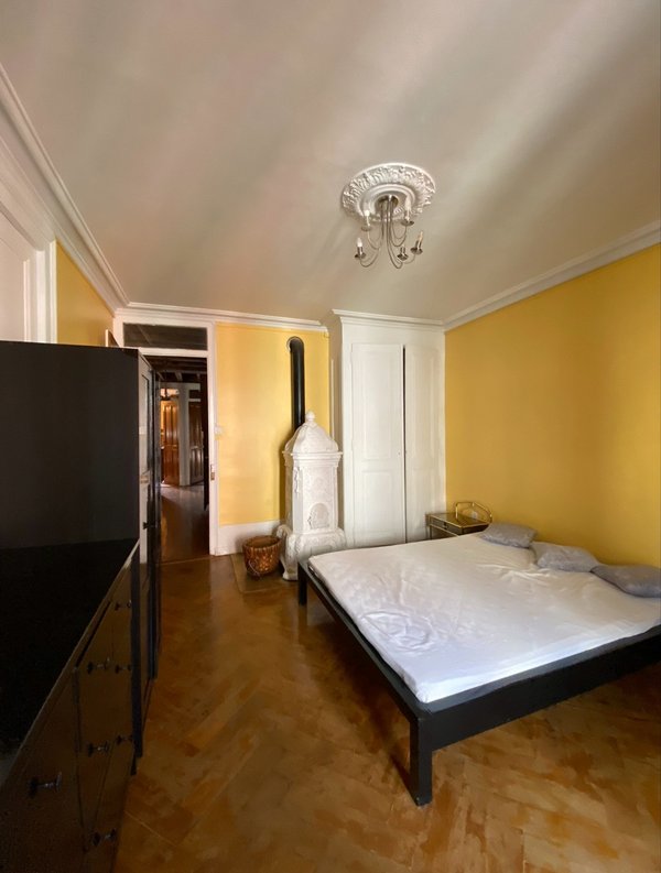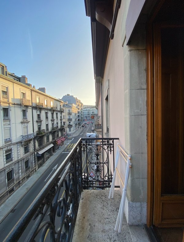 Calme, doubles fenêtres, cheminée fonctionnante, chauffage central, pour une personne, animaux de compagnie admis. 3ème étage avec ascenseur. Près de la gare de métro Champel (Leman Express) et de l'arrêt du tram 12. Libres de suite.