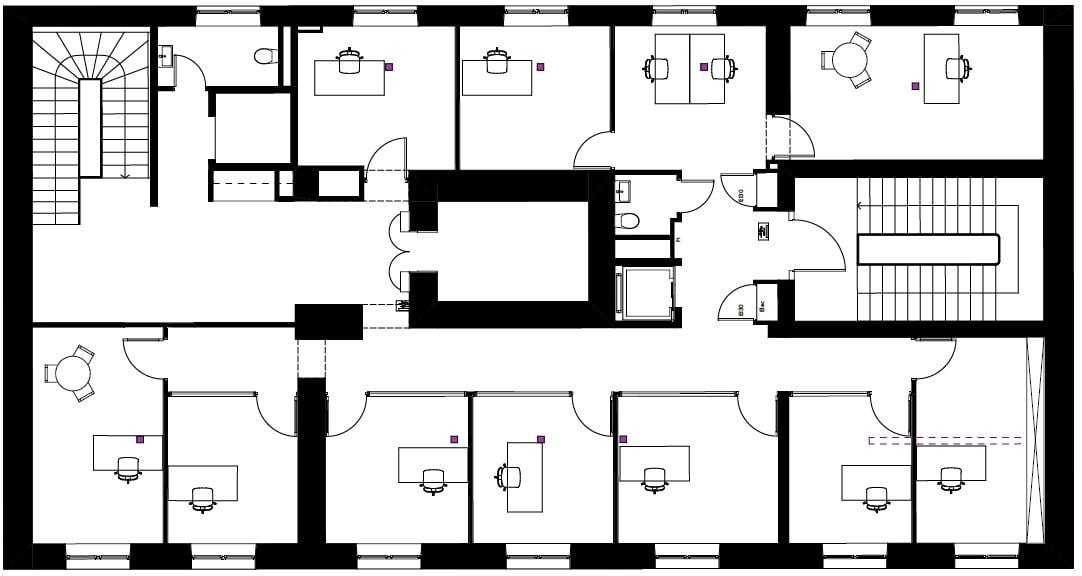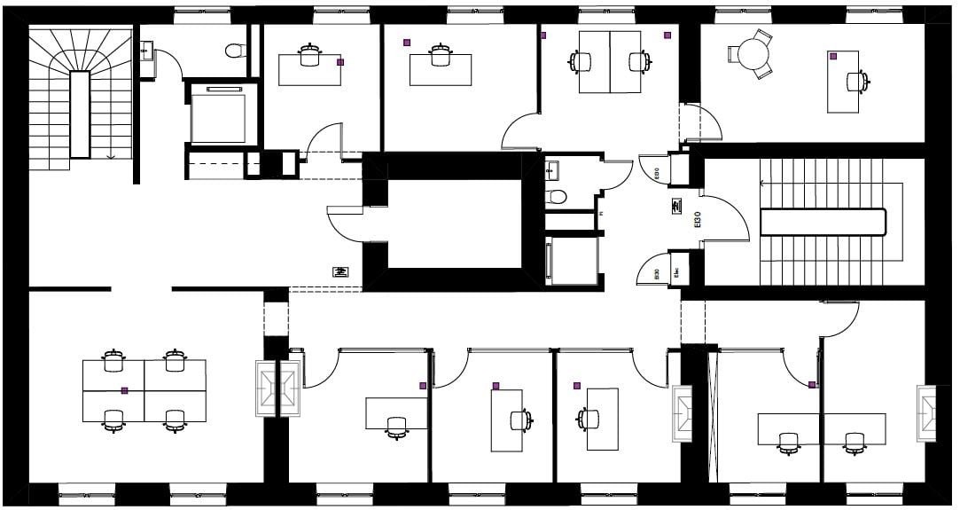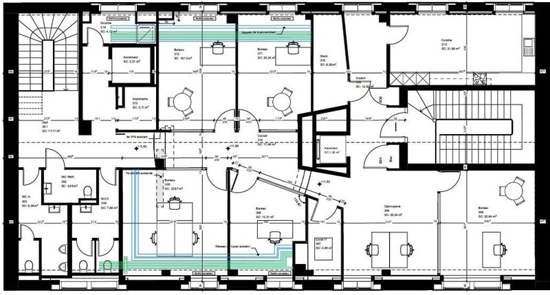 - Cachet d'un immeuble historique - Possibilité de créer des open spaces - Bureaux cloisonnés - Salles de conférence - Auditorium - Câblage périphérique - Salle serveur - Finition : Aménagé - Ascenseur - Ventilation/Rafraichissement : Ventilo-convecteur - Sanitaires