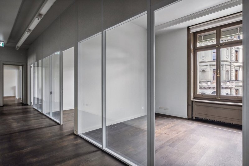 Surfaces de bureaux rénovées en 2021 à louer dans le quartier des banques à Genève :