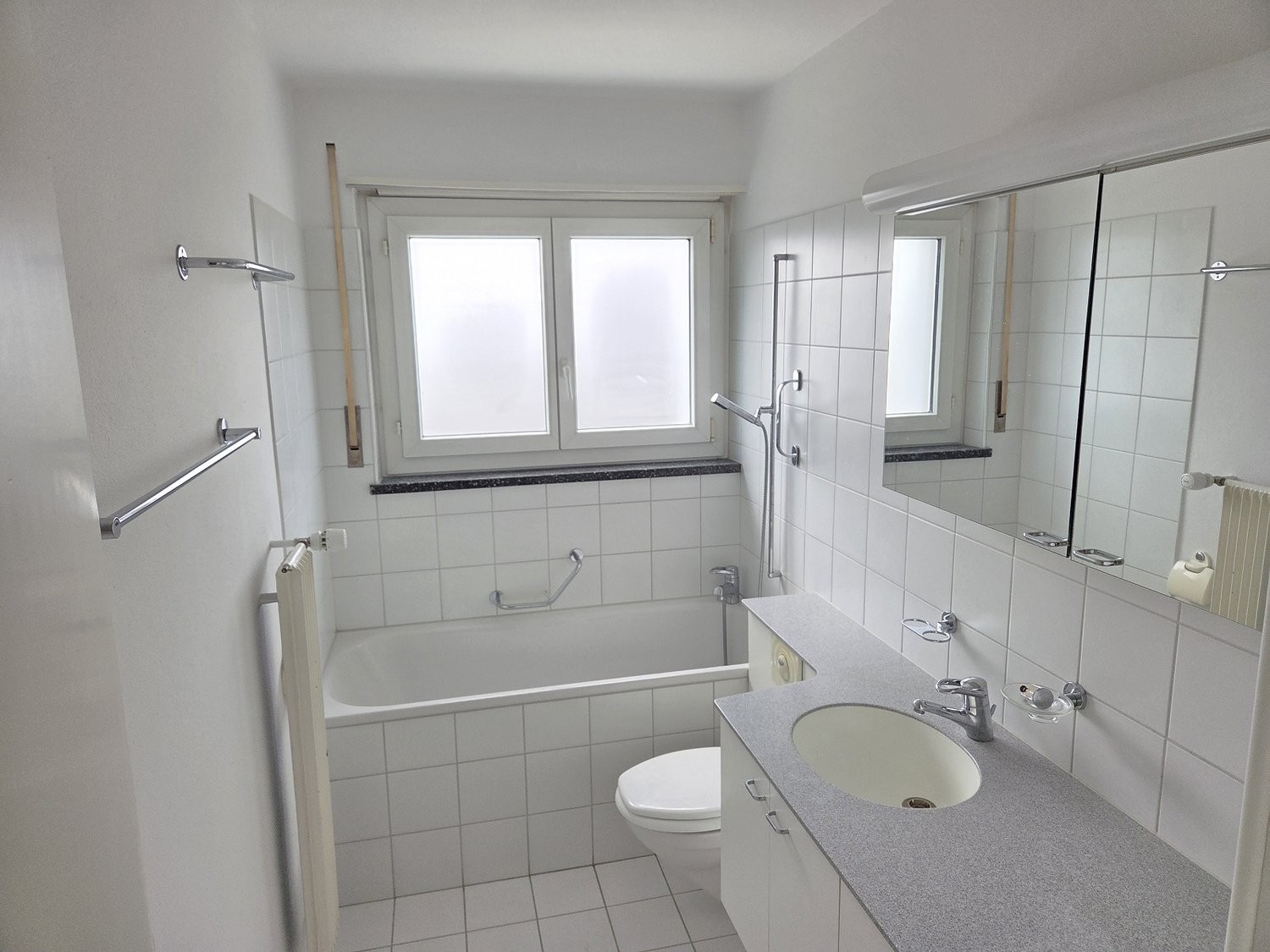 - Badezimmer mit Badewanne, Plattenboden
