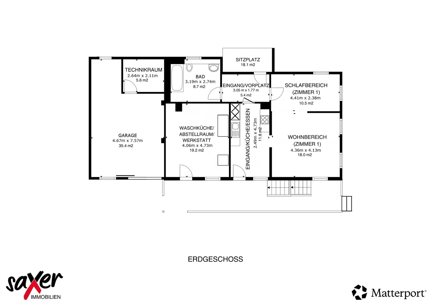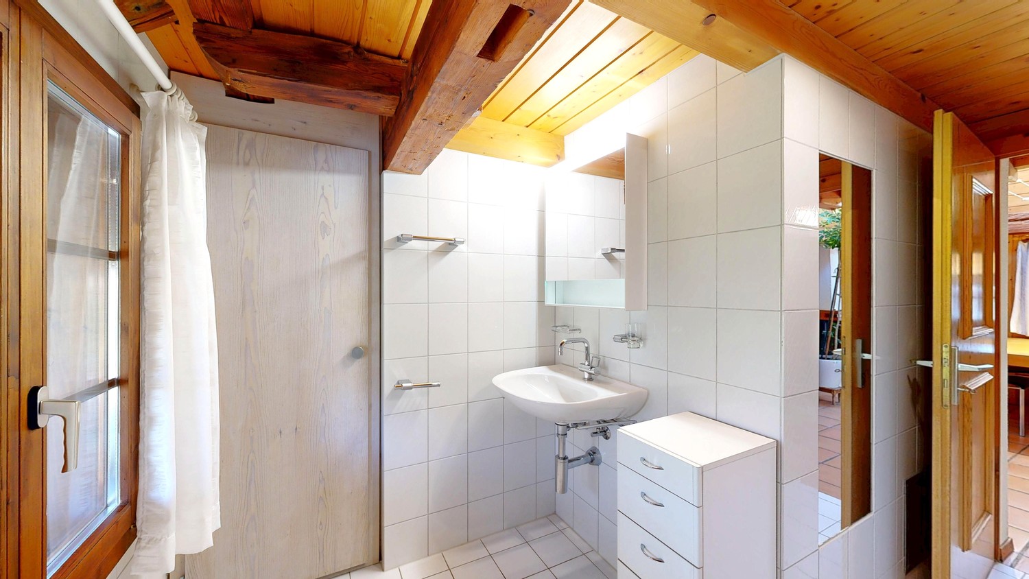 Die Waschküche/Abstellraum/Werkstatt bietet ausreichend Platz und befindet sich im Erdgeschoss. Im Untergeschoss finden Sie den Keller sowie ein abschliessbares Kellerabteil. Für Ihre Fahrzeuge steht ebenfalls genügend Platz zur Verfügung: eine Garage mit Technikraum und Vorplatz sowie drei zusätzliche Aussenabstellplätze.