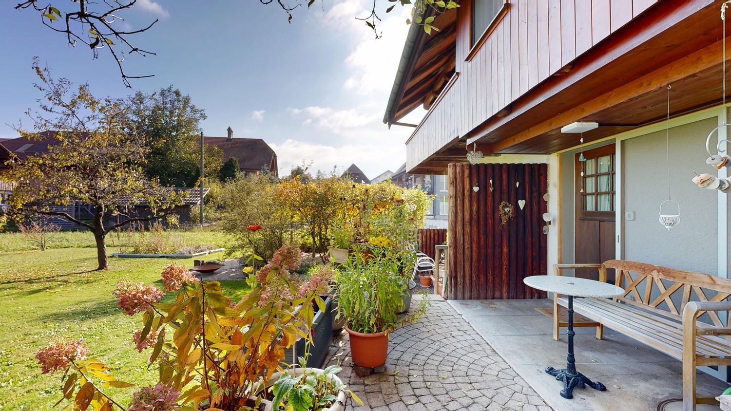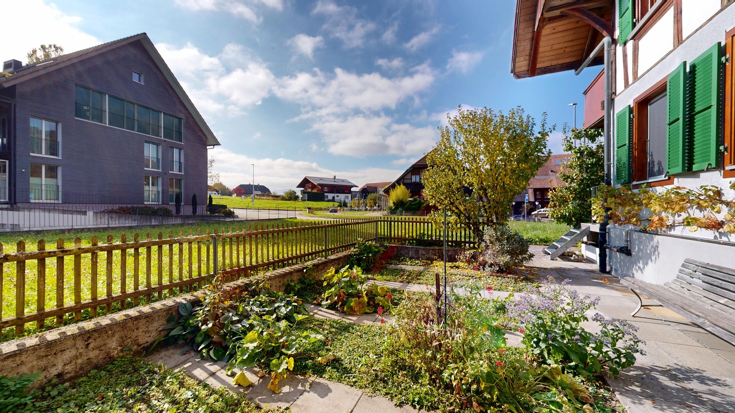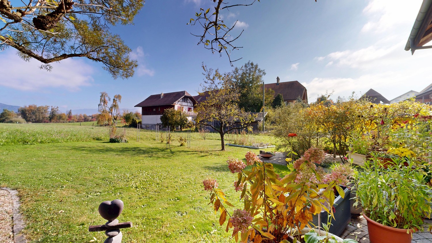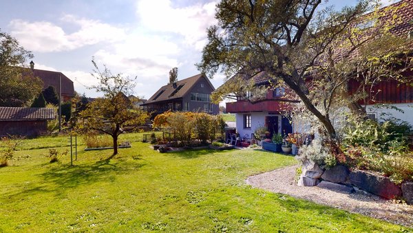 Das Grundstück bietet viel Spielraum, um sich zu entfalten. Geniessen Sie gemütliche Stunden im grosszügigen, idyllischen Garten. Ein ideales Zuhause für Familien oder Gartenliebhaber mit Platzbedarf! Dank der optimalen Ausrichtung geniessen Sie den ganzen Tag die Sonne. Die Liegenschaft verfügt über eine 5 ½ Zimmer-Wohnung mit Galerie im Ober- und Dachgeschoss sowie über eine 1 ½ Zimmer-Wohnung im Erdgeschoss. Zurzeit ist die 1 ½ Zimmer-Wohnung im Erdgeschoss inkl. einem Aussenabstellplatz vermietet.