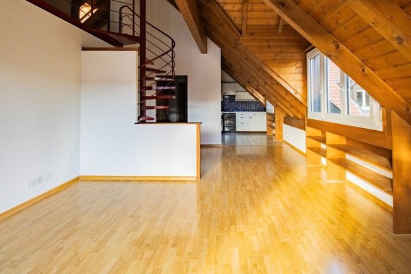 Diese lichtdurchflutete 5.5-Zimmer-Dachwohnung im 2. Obergeschoss überzeugt mit ihrer offenen Galerie, dem stimmungsvollen Cheminée und der besonderen Wohnhöhe, die jedem Raum Charakter verleiht. Das Zusammenspiel aus Grosszügigkeit und Gemütlichkeit schafft eine Atmosphäre, in der man abschaltet und auftankt.