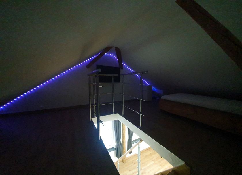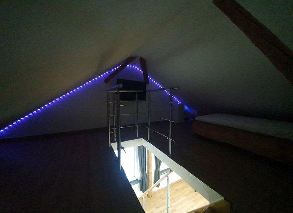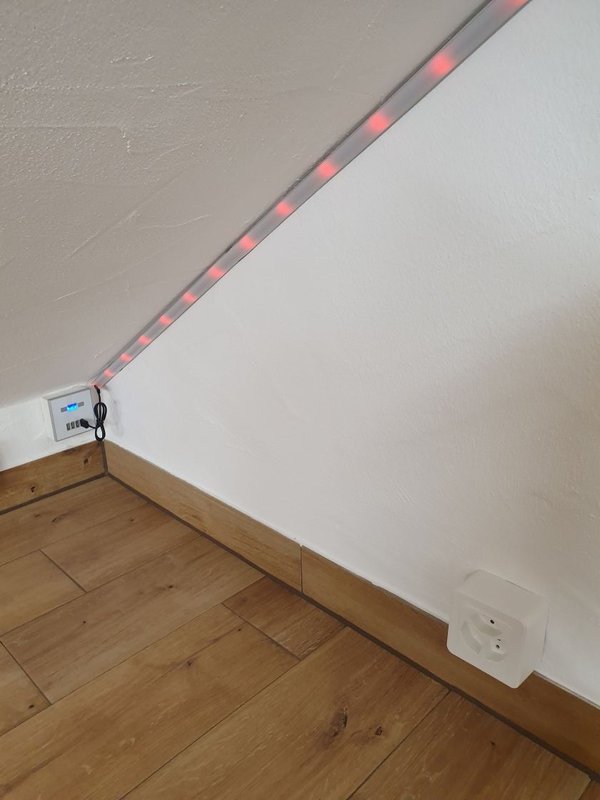 für die Beleuchtung ist gesorgt mit versch. Beleuchtungsmitteln und LED- Streifen mit verschiedenen Farben.