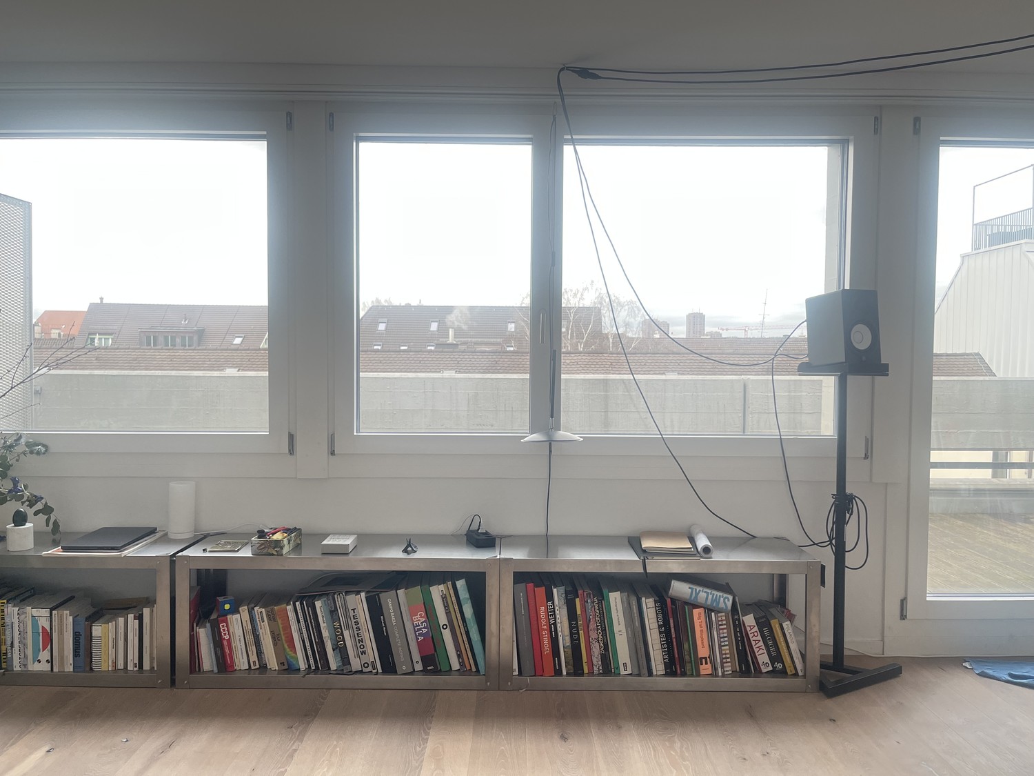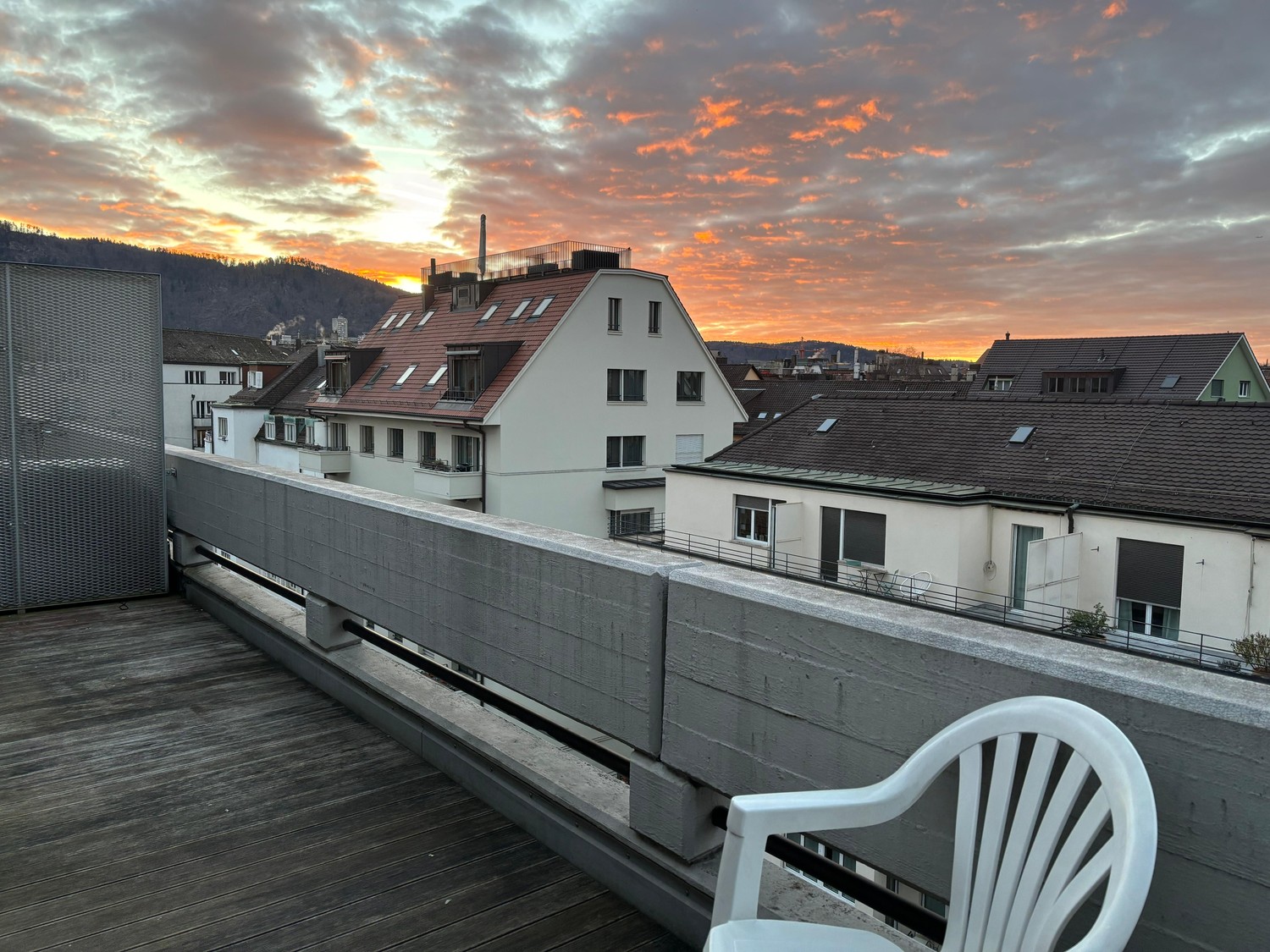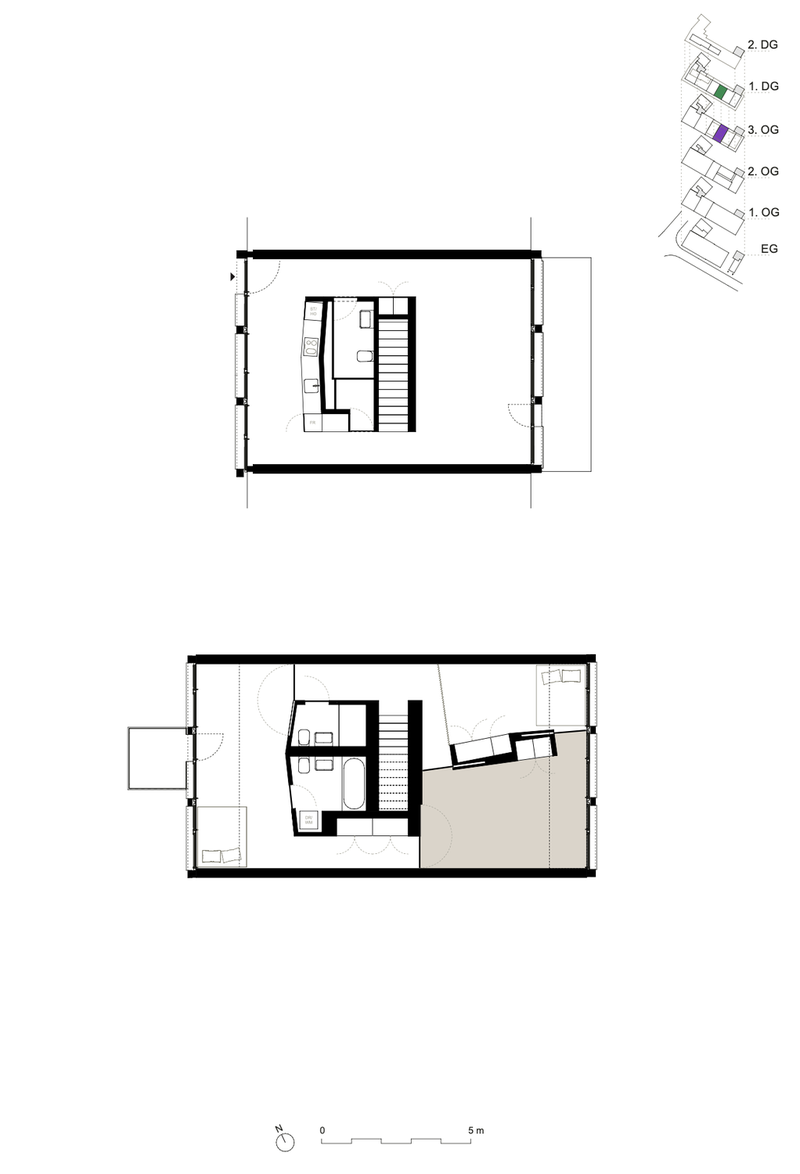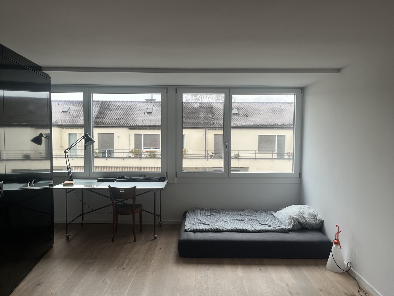 The apartment spans the 3rd and 4th floors (top floor) and has 145 sqm in total. The room has 21 sqm. The price is 1600 chf including everything apart from electricity. There is no deposit.