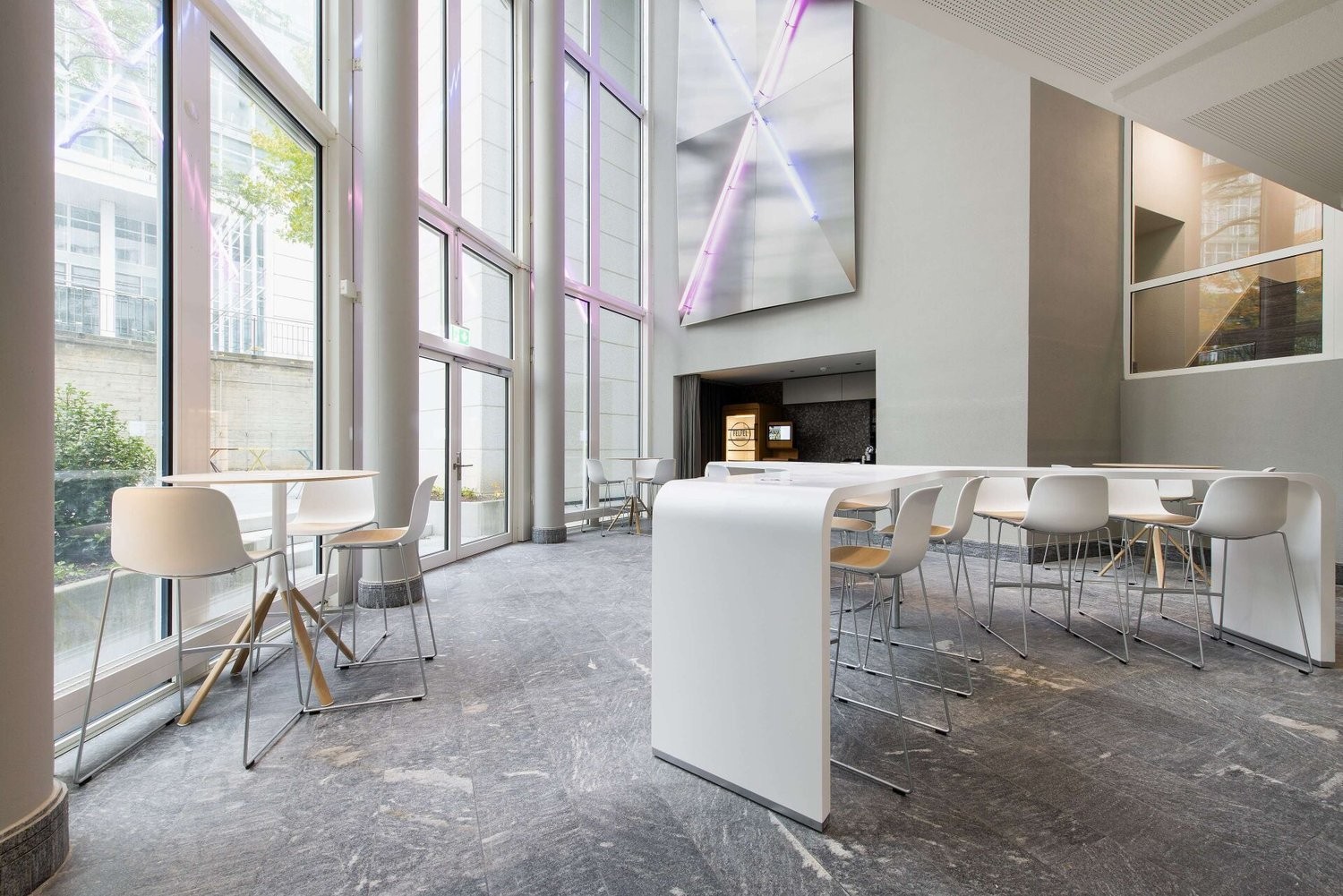 Alle Mietflächen verfügen über: Doppelboden, Lüftung mit vorkonditionierter Luft, Akustikdeckensegel, Teeküchen sowie Sanitäranlagen auf der Mietfläche