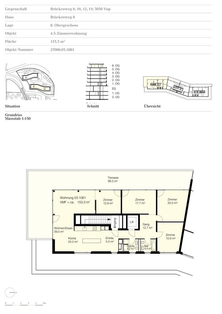 Die grosszügige und lichtdurchflutete Wohnung bietet anspruchsvollen Mieterinnen und Mietern ein wundervolles Zuhause. Der Wohnkomfort in der Überbauung Brückenweg wird hohen Ansprüchen gerecht.