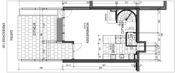 - Keramikbodenplatten in Küche, Bad und Gäste-WC sowie im Eingangsbereich