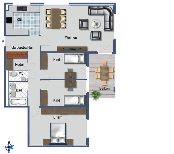 Grosszügiger Balkon mit zusätzlicher Nutzfläche