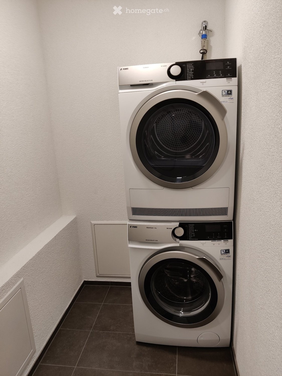Zur Wohnung ist ein Kellerabteil inkl. Ein zusätzlicher Waschraum mit Waschturm und Secomat darf mitbenutzt werden. Der Autoeinstellplatz ist zusätzlich mietbar. Auf Wunsch und nach Verfügbarkeit kann zusätzlich ein Aussenparkplatz und ein Hobbyraum (11m2) dazu gemietet werden.
