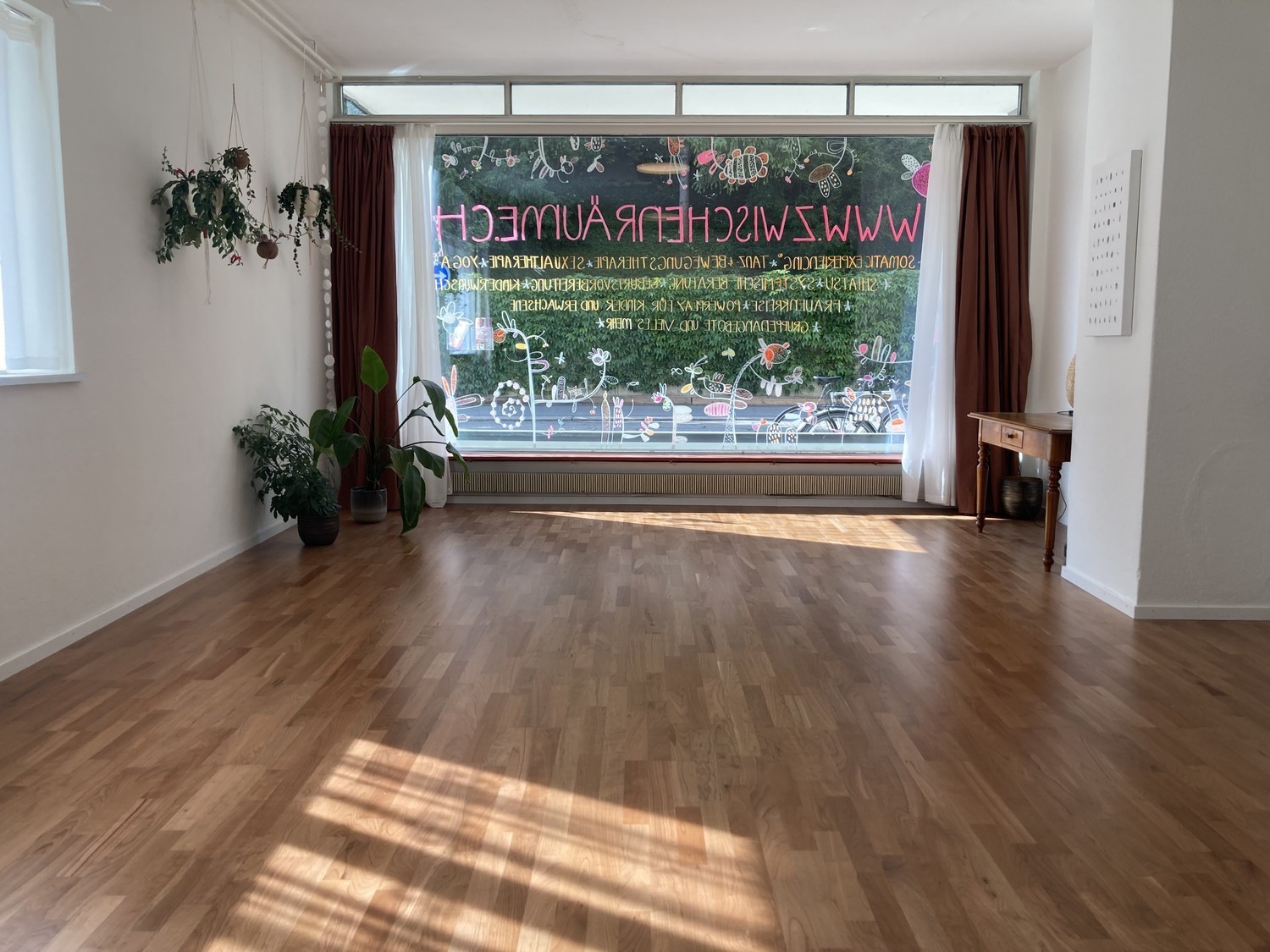 Vielseitiger Raum Langfristig verfügbar. Per sofort steht dieser inspirierende Raum (ca. 47 m2) an einzelnen Tagen langfristig zur Verfügung unter dem Namen und Konzept Zwischenräume. Ein idealer Ort für Therapie, Tanz, Yoga, Gruppenprozesse, Seminare und andere kreative Formate. Besonders freuen wir uns darüber, wenn Yoga seinen Platz im Raum findet.