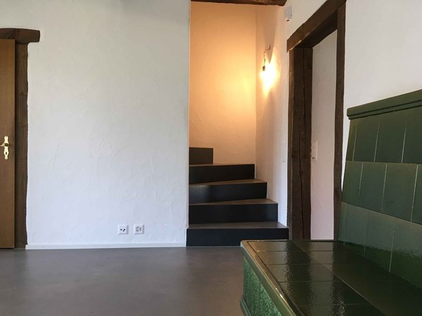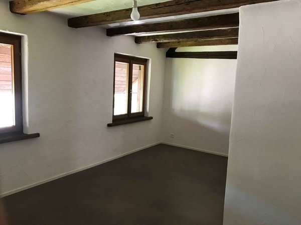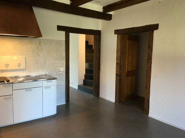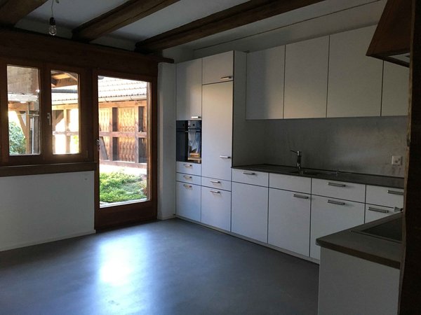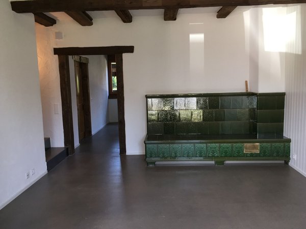 Die moderne Küche verfügt über einen grossen Kühlschrank, einen Geschirrspüler sowie ein grosszügigen Reduit mit Waschmaschine. Das Wohnzimmer ist mit einen rustikalen Kachelofen ausgestattet, welcher in kälteren Zeit für eine heimelige Wärme zusätzlich eingefeuert werden kann. Der überdachte Sitzplatz wurde mit einem Gartenanteil erweitert und verfügt über ein Aussencheminée. Weitere Pluspunkte der Wohnung sind der im Mietzins inkludierte Parkplatz sowie der kleine aber schöne Vorgarten. Das ebenfalls renovierte Bad verfügt über eine Badewanne. Geheizt wird die Wohnung über eine Erdsonde mit einer Wärmepumpe mit Bodenheizung. Als Nebenräume stehen ein Keller mit Naturboden sowie ein Estrich zur Verfügung.