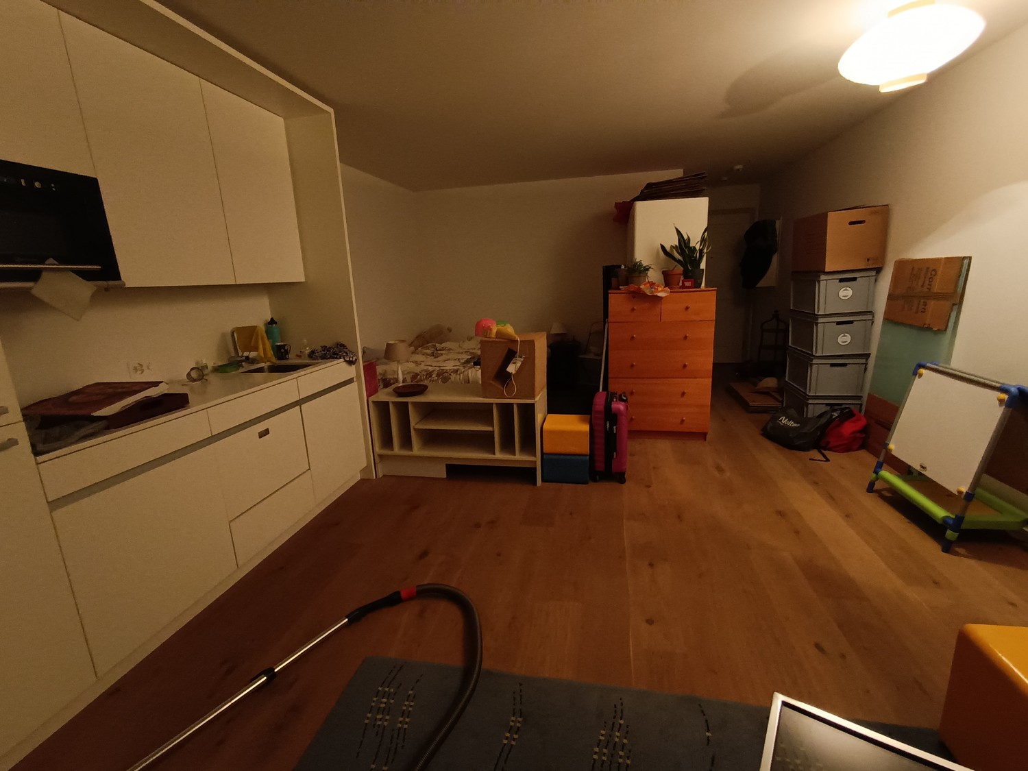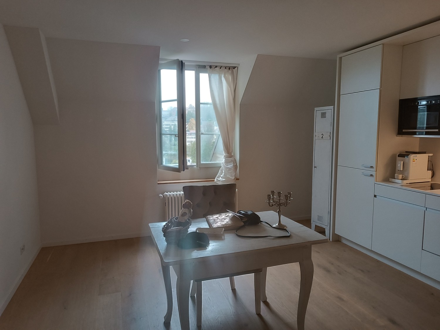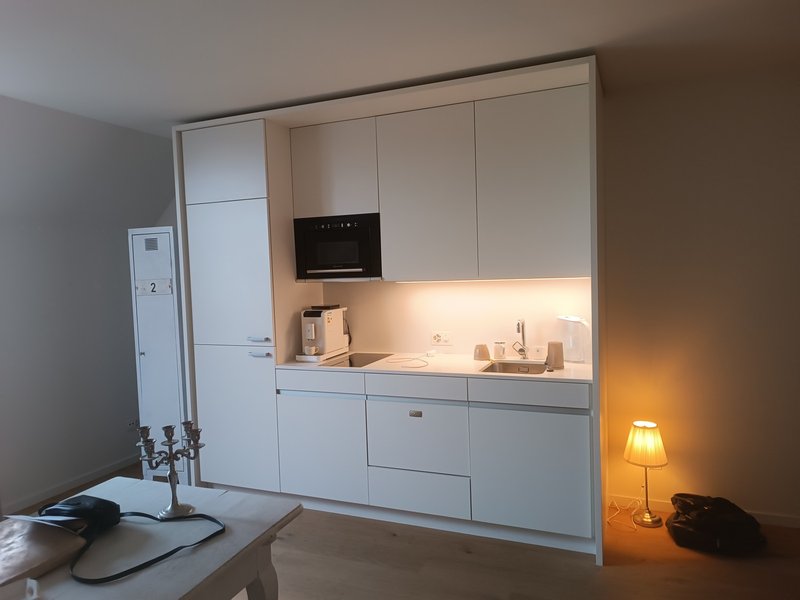 Der große weiße Schrank bleibt in der Wohnung.
