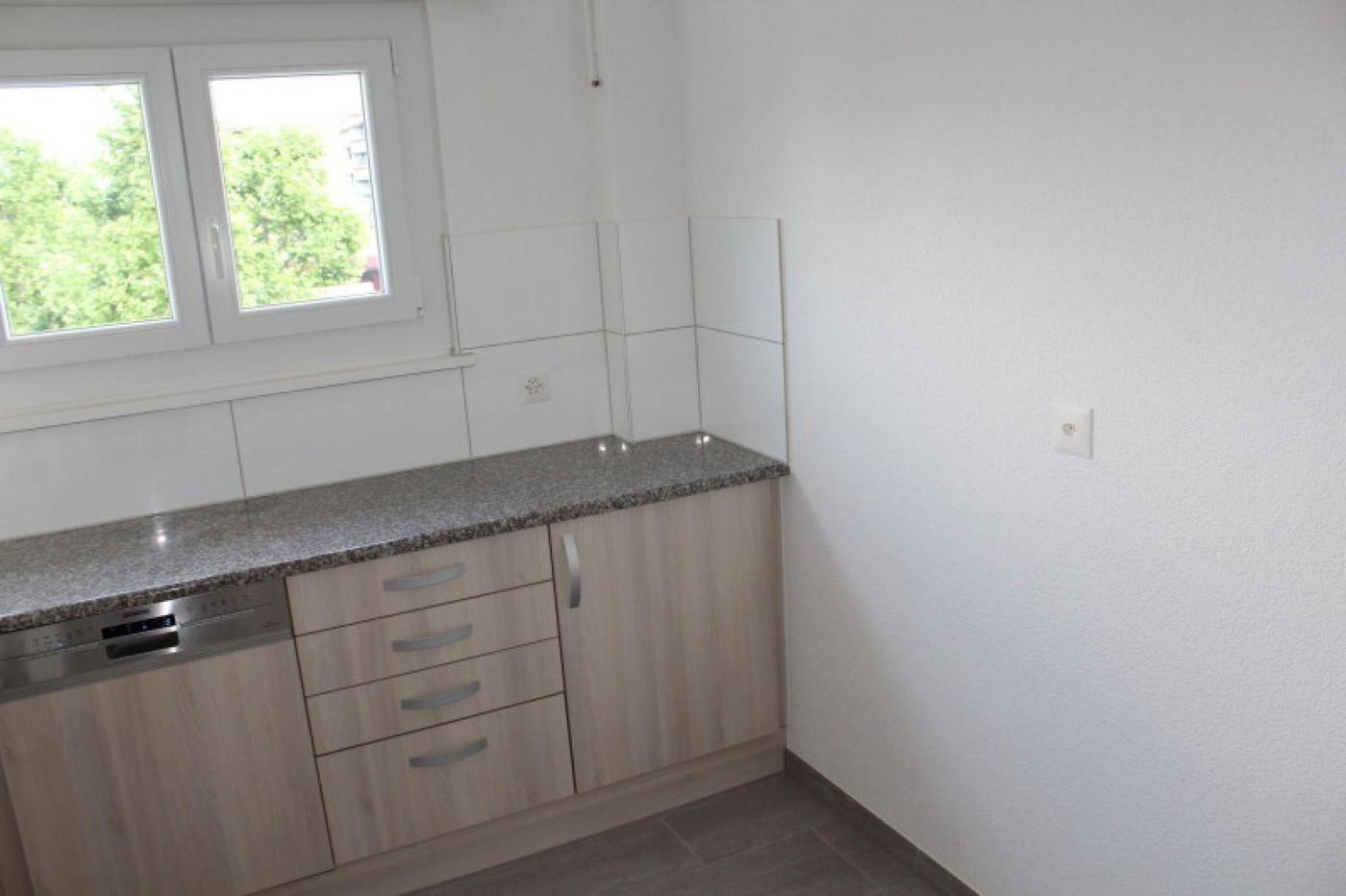 graue Plattenböden in Küche, Korridor, WC/Badezimmer