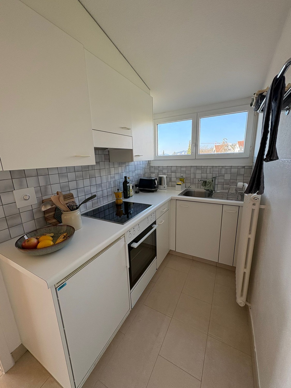 Die Wohnung ist charmant, modern und zurückhaltend eingerichtet. Durch eine grosse Fensterfront und ein grosses Dachfenster über dem Bett ist die Wohnung sehr hell. Sie verfügt ausserdem über zwei Einbauschränke, wo du alle deine Sachen verstauen kannst.