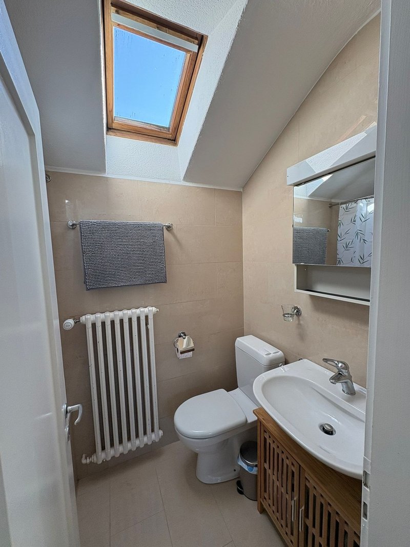 Die 1.5-Zimmer Wohnung hat ein Bett (1.60m), einen grossen Tisch mit Platz für bis zu 5 Personen und eine Couch zum Chillen. Die Küche ist komplett ausgestattet und verfügt über Stauraum und Platz zum Kochen (ohne Geschirrspülmaschine). Das Bad ist mit allem ausgestattet, was du benötigst, und hat eine Badewanne sowie ein kleines Dachfenster.