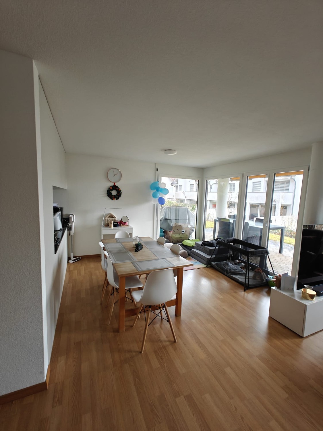 Laundry and drying facilities are located in the basement on the same level of the building. My wife and I truly enjoyed living here, especially because of the garden. During the summer, the surrounding greenery keeps the apartment noticeably cooler, making hot days much more comfortable. Apartment has also a floor heating.