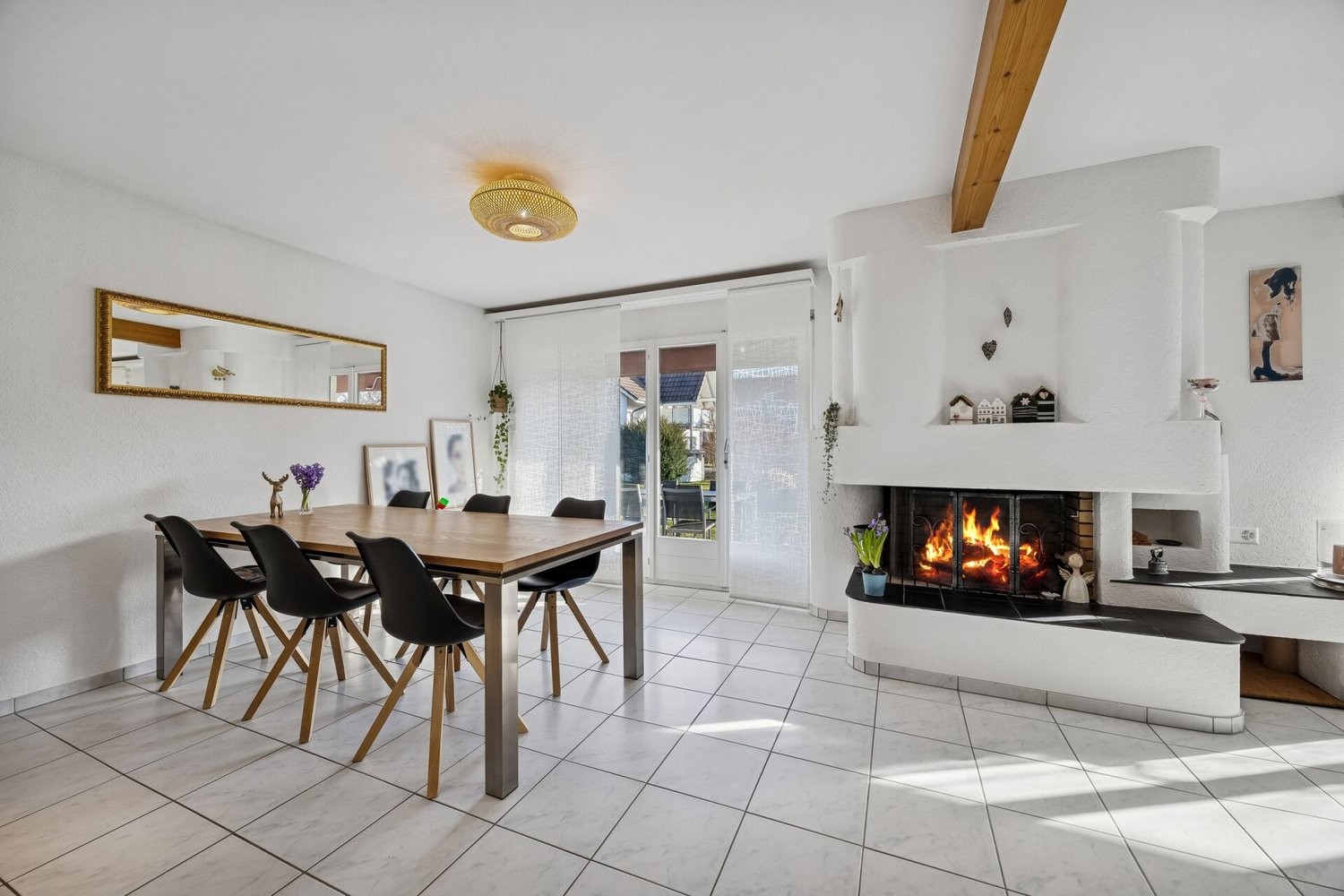 Heller Wohn- und Essbereich mit Cheminée
