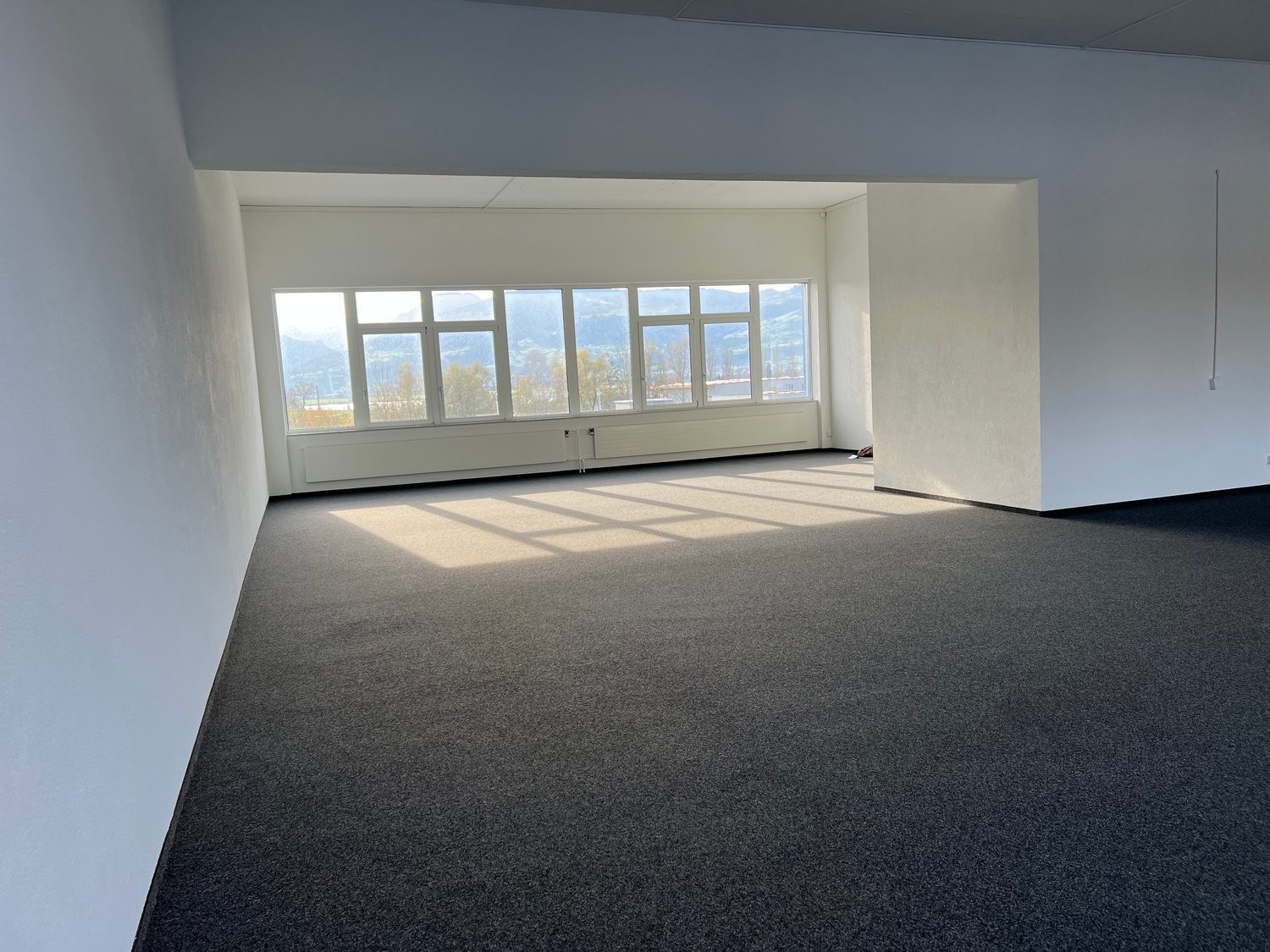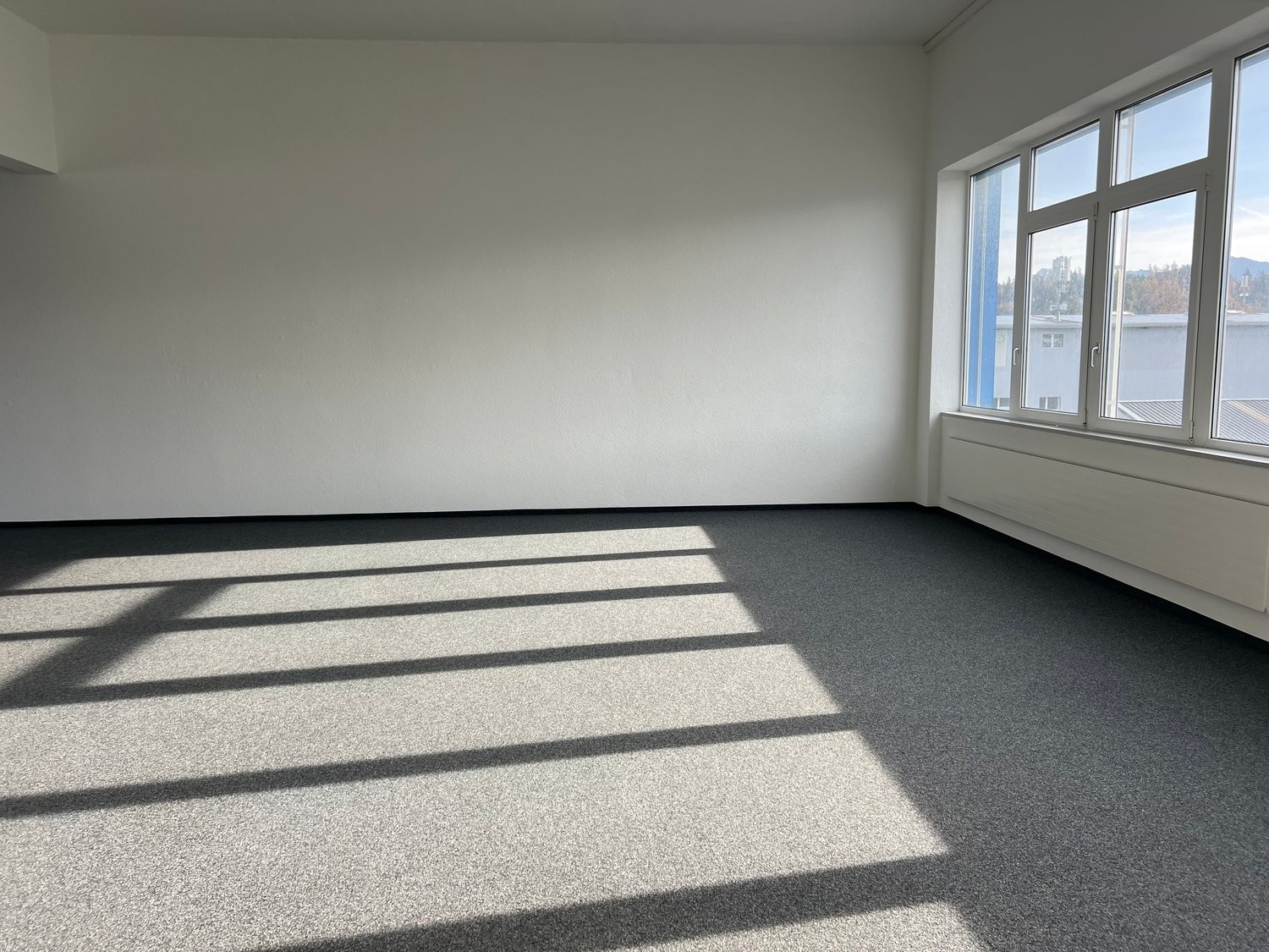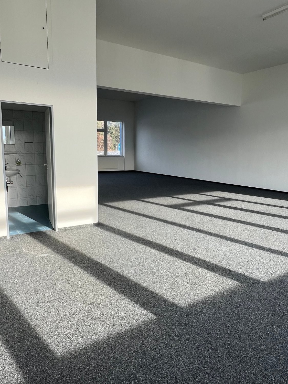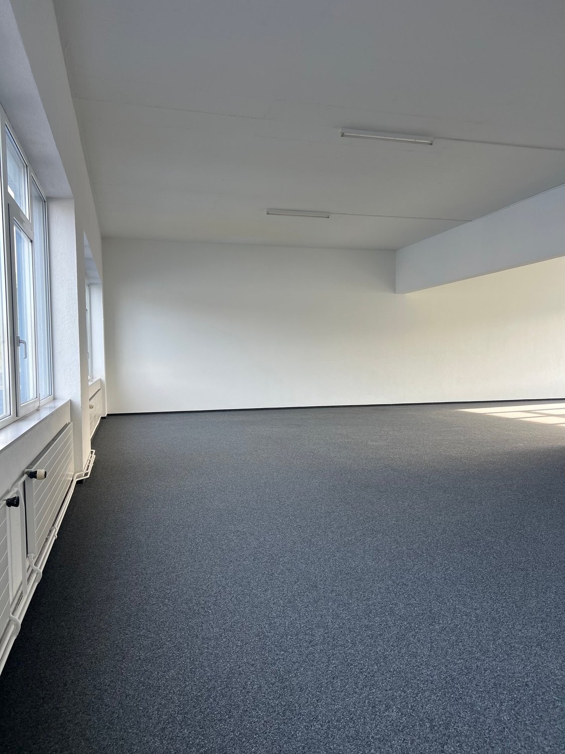 160 m² helle, frisch gestrichene Fläche mit praktischem Kugelgarnteppich