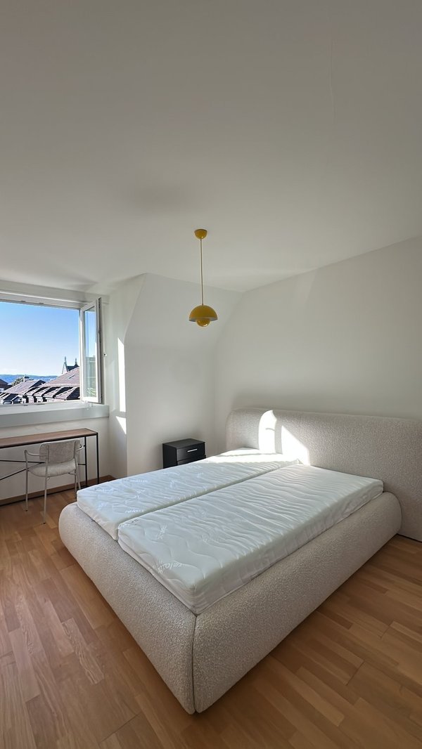 Frisch renovierte 4-Zimmer-Wohnung, neu als WG. Vier private Zimmer, 17 bis 22 m2 - genug Platz für Rückzug und Fokus. Badezimmer und Küche werden geteilt. Die Küche ist modern und voll ausgestattet: Induktionsherd, Backofen, Geschirrspüler. Glasfaser-Internet ist vorhanden. Monatliche Reinigung der Gemeinschaftsflächen ist inklusive.