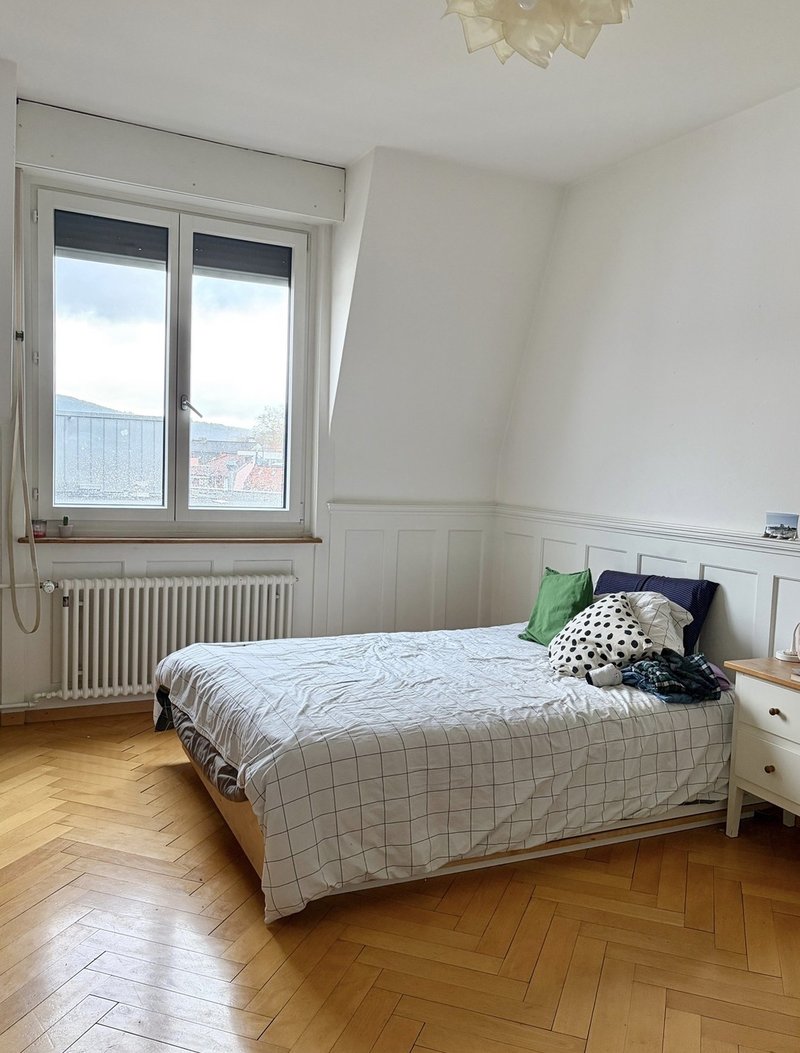 I’m leaving my bright 14 sqm room in Lochergut, a few minutes from Bullingerplatz.