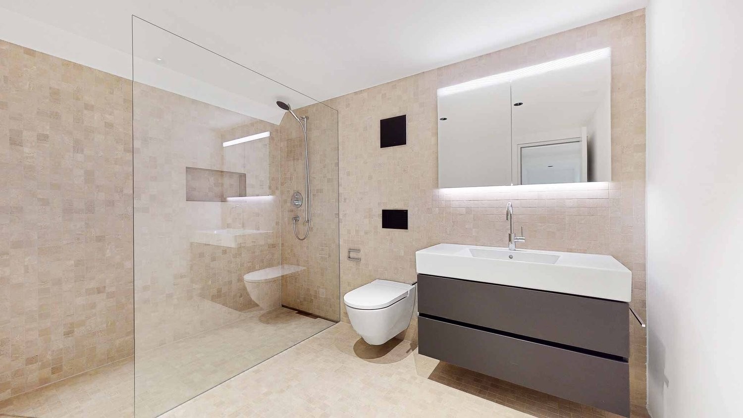 - Badezimmer mit Plattenboden