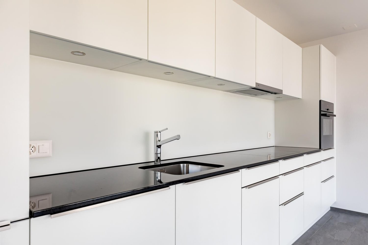- Küche: Granitabdeckung schwarz, Glasrückwand weiss/matt, Glaskeramikkochherd, Geschirrspüler, Kühl-Gefrierkombination