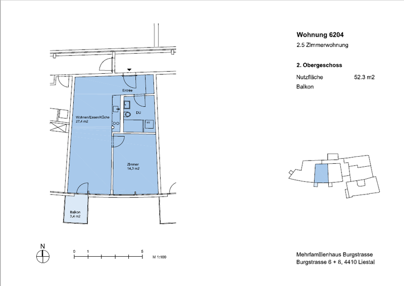 Die Wohnung befindet sich in unmittelbarer Nähe zum Bahnhof, dem Törli und dem Stedtli.