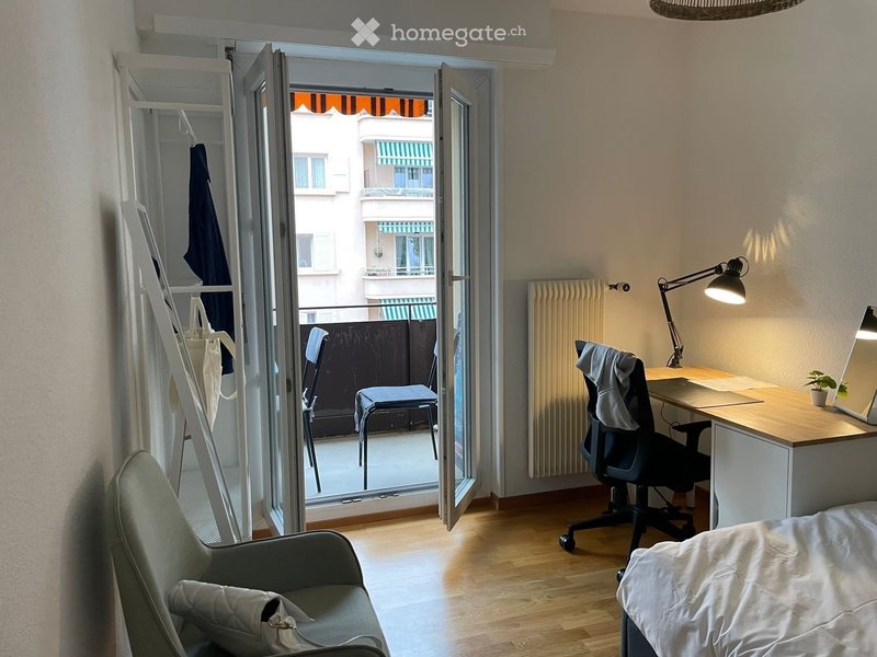 Jolie chambre meublée, lumineuse avec accès à un balcon, cuisine, salle de bain et toilettes partagées.