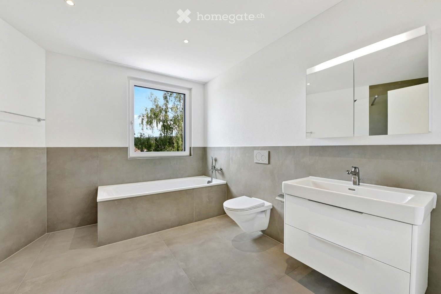 - 2 Moderne Badezimmer: Mit Badewanne, gefliestem Boden und Fenster