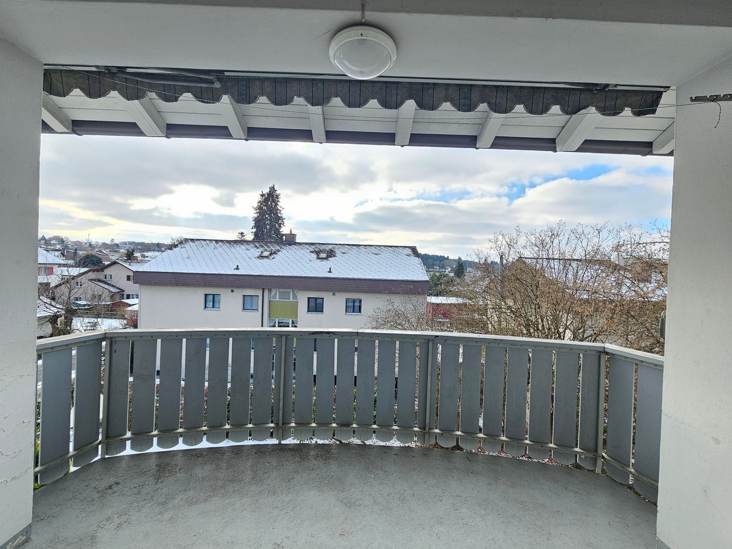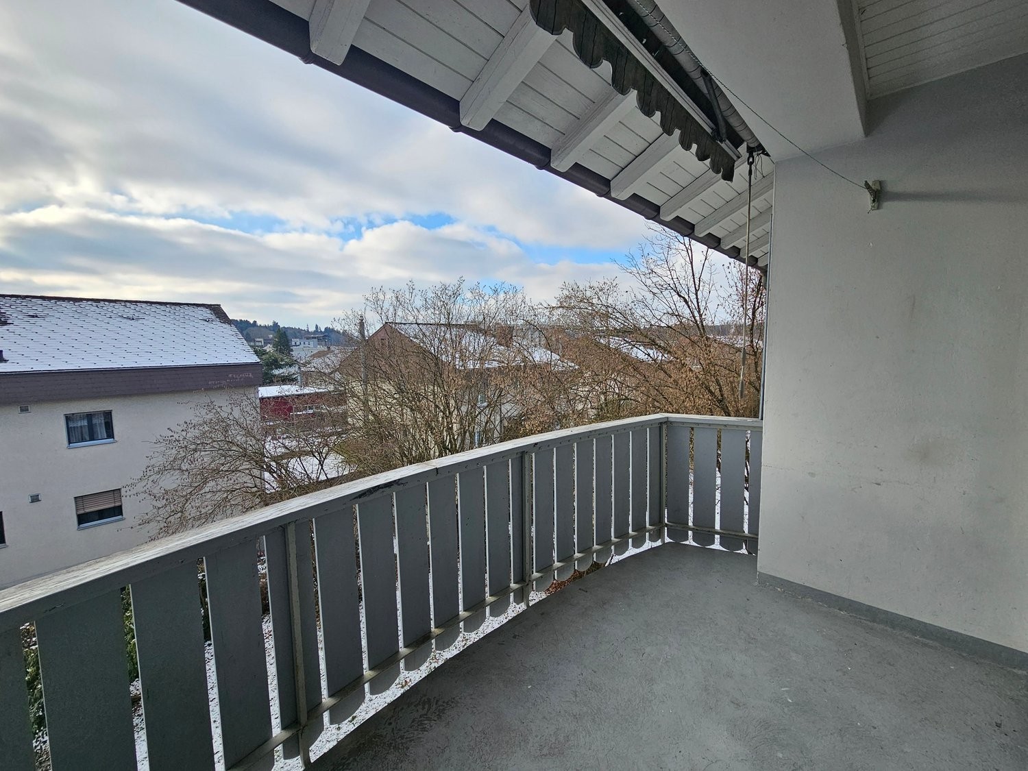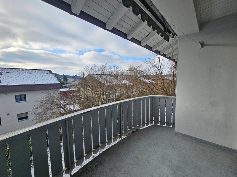 Badezimmer sowie einen grossen Balkon mit Aussicht.