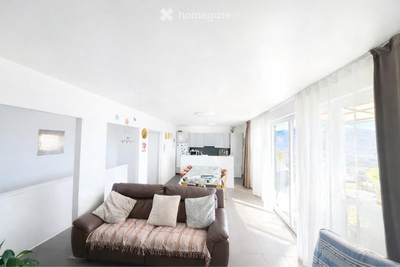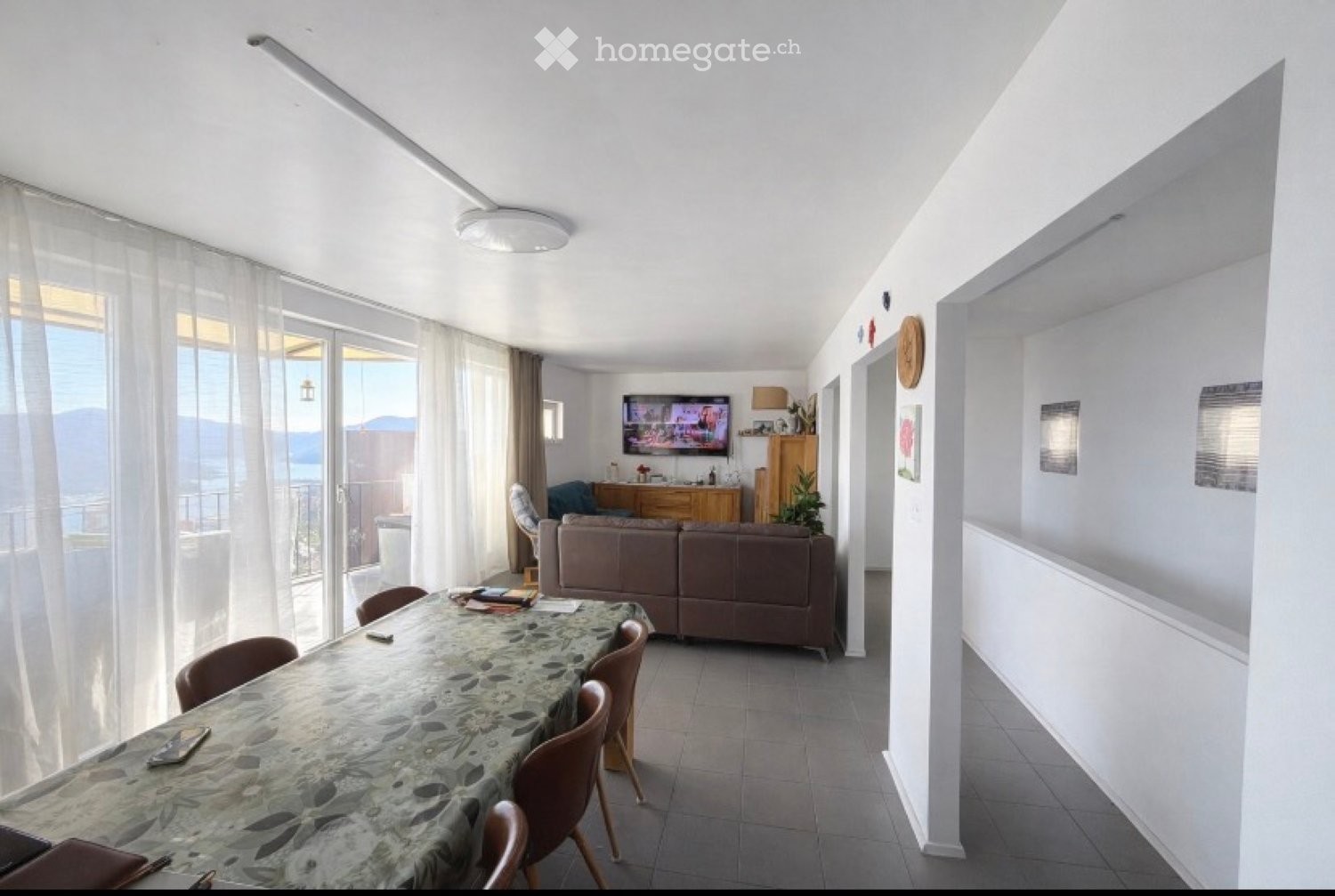 Appartamento duplex, tre camere da letto, due bagni, doppio ripostiglio, terrazza con veduta sul lago di Lugano, due parcheggi esterni, ampio giardino e cantina.