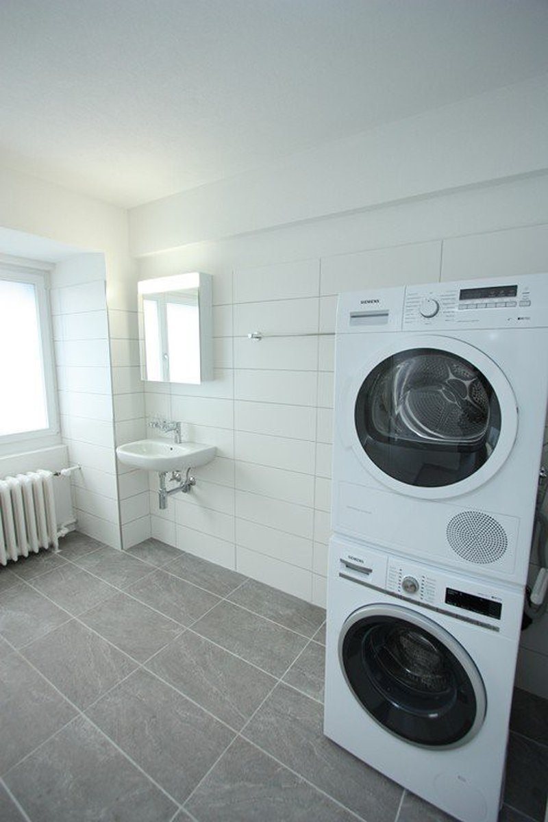 Attraktives Badezimmer mit eigenem Waschturm für maximalen Wohnkomfort