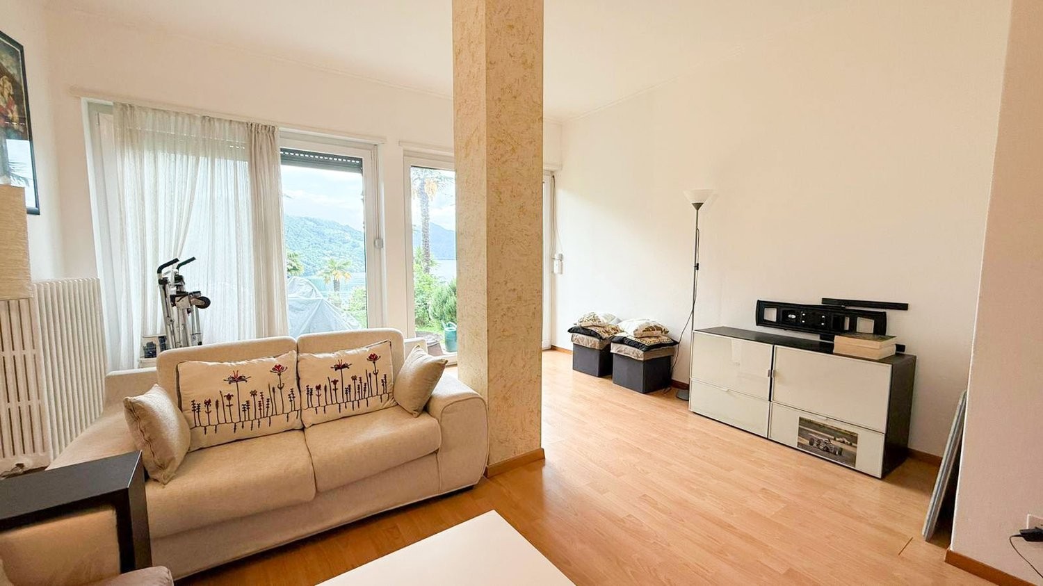 Spazioso soggiorno: Luminoso e accogliente, con accesso diretto al balcone che offre una vista rilassante sul verde circostante.
