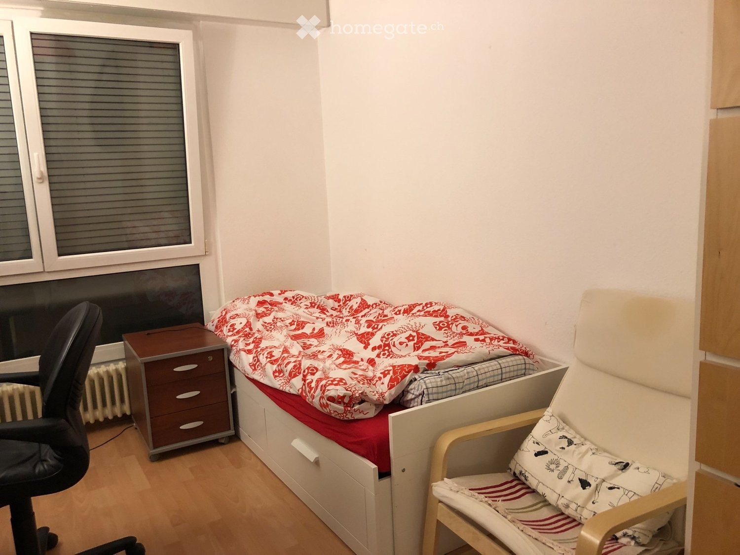 Chambre dans un appartement. Cuisine, WC, salle de bain partagés. Accès Wifi. 10 min de la gare. Bus à proximité. Libre dès fin mars.