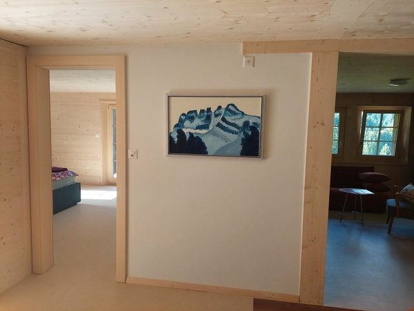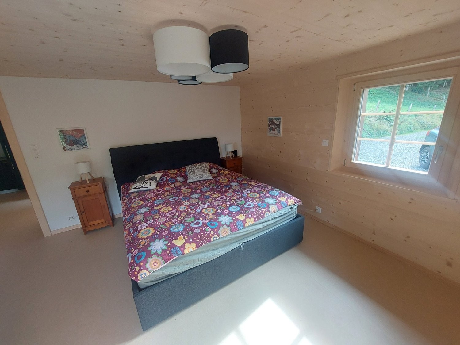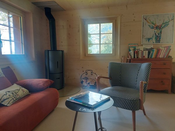 Entrée avec armoires encastrées, salle de bain avec douche spacieuse, une très grande chambre avec possibilité de rajouter un lit. Très vaste salle à manger avec table pouvant accueillir 10 personnes. Grande cuisine toute équipée. Living avec fourneau à bois et canapé-lit deux places. Le salon peut être séparé de la salle à manger par une cloison en bois. Lave-vaisselle et lave-linge (sans sechage), machine à café Nespresso, etc.