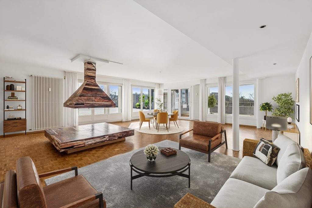 Venez visiter ce merveilleux 4 pièces de 122 m2 avec immense terrasse avec partie couverte sur le toît de l'immeuble.