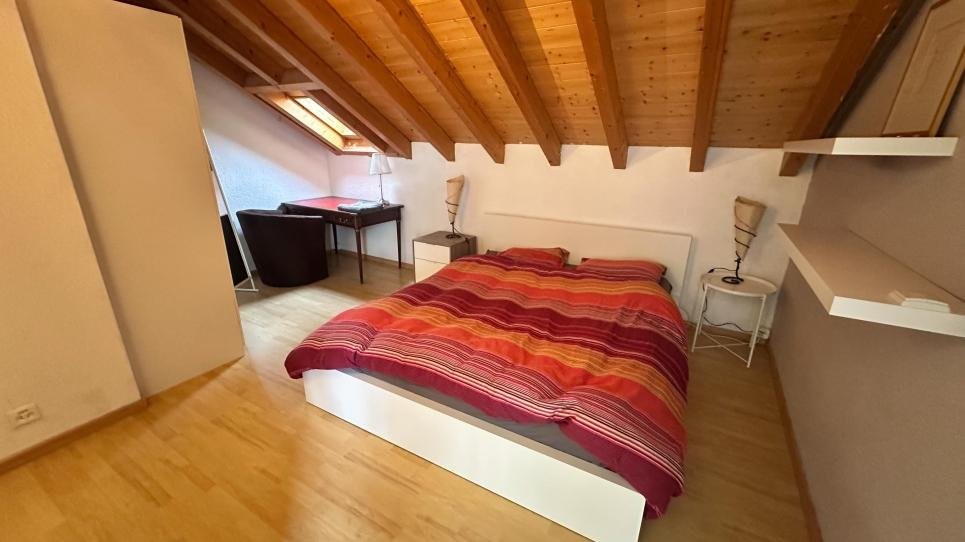 bel appartement de 3.5 dans une villa de 2 logements. Entièrement refait en 2025, avec deux chambres à coucher une salle de bain, un salon salle à manger, cuisine avec accès à un balcon plein sud et une place de parking extérieure.