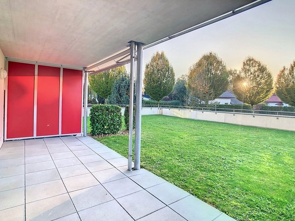 Magnifique appartement de construction récente comprenant une cuisine avec agencement moderne ouverte sur spacieux et lumineux séjour, un hall avec armoires murales, une chambre avec parquet, une salle de bains/WC avec une colonne de lavage-séchage, une belle terrasse privative et une cave avec lumière et prise.