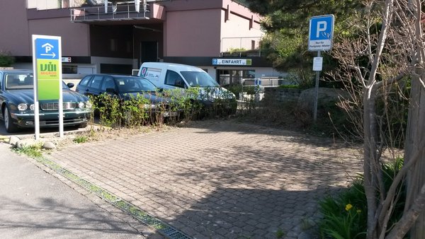 Linker Teil des Parkfeldes gemäss Foto, zentrale Lage, Busstation in der Nähe, ideal für Anwohner, Pendler usw. Der Parkplatz eignet sich für Fahrzeuge in der Grösse eines Personenwagens.