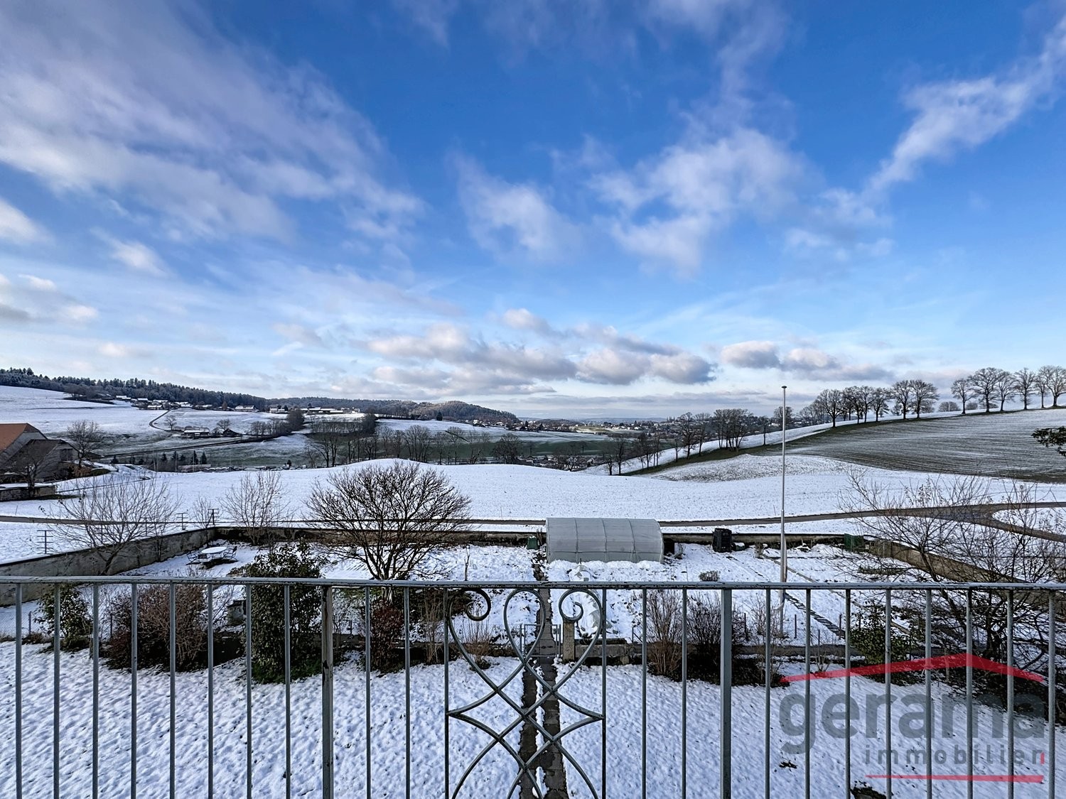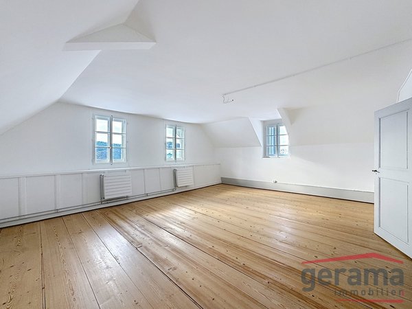 - Un vaste séjour lumineux, sublimé par une fresque apparente, un parquet soigné et un chaleureux poêle à bois