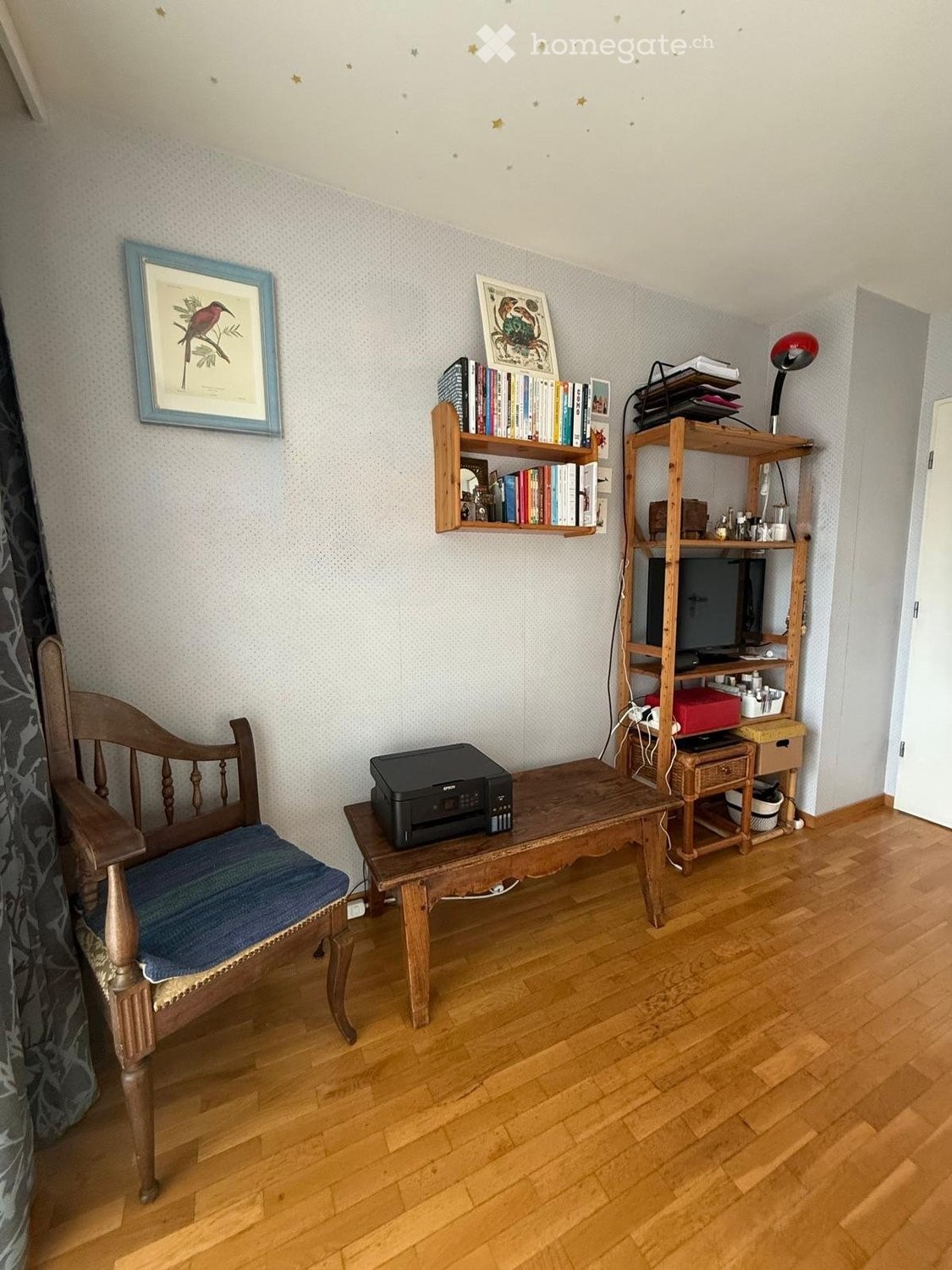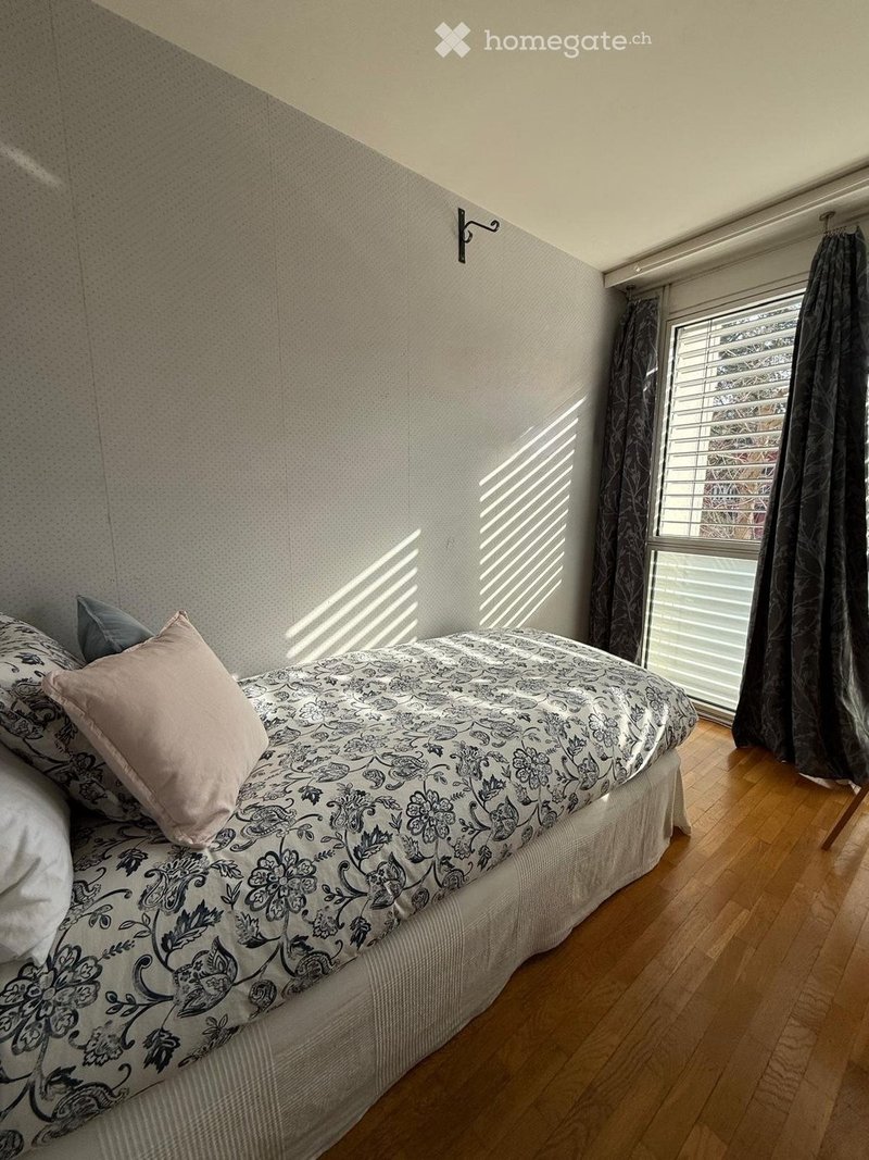 Chambre spacieuse,lumineuse, dans grand appartement de 132mcarré, en duplex. Jardin. Douche, wc et lavabo à partager à 2, cuisine équipée et spacieuse à partager à 3. Située dans quartier boisé, agréable, parcs et zone piétonnes, commerces variés de proximités, à 2mn du tram 15 et 17. 15mn de UniGe avec le tram.